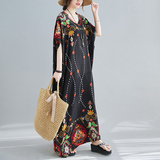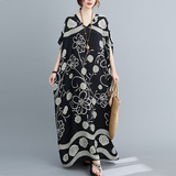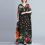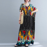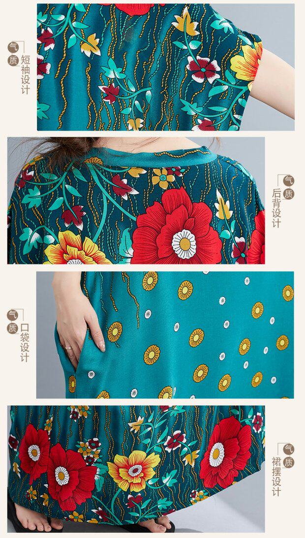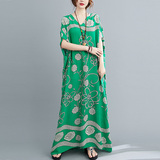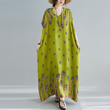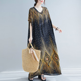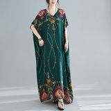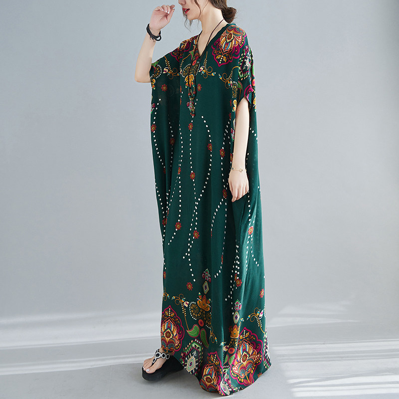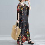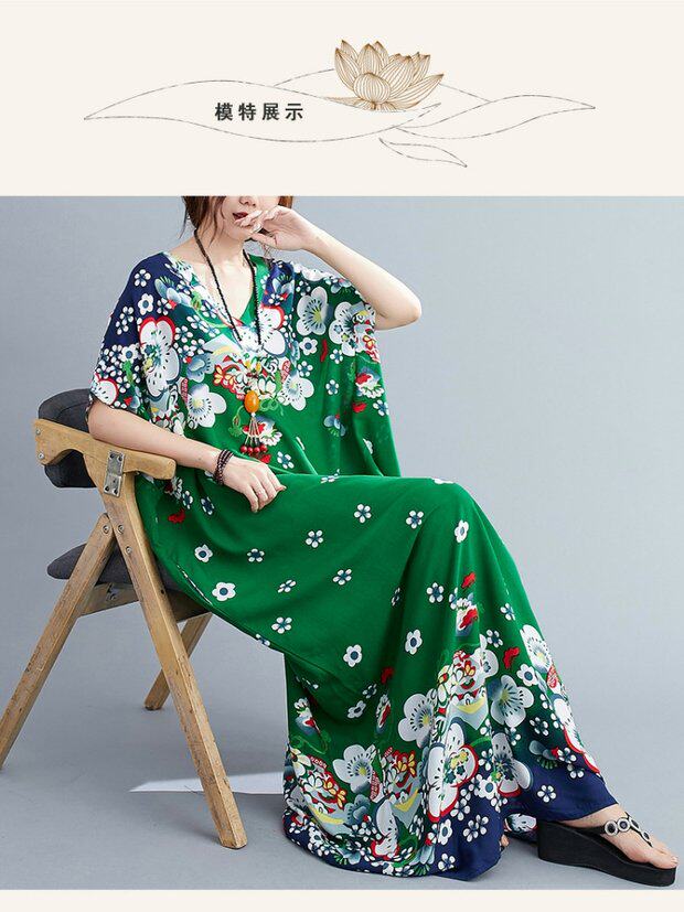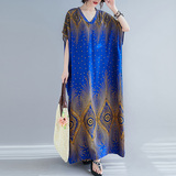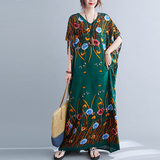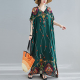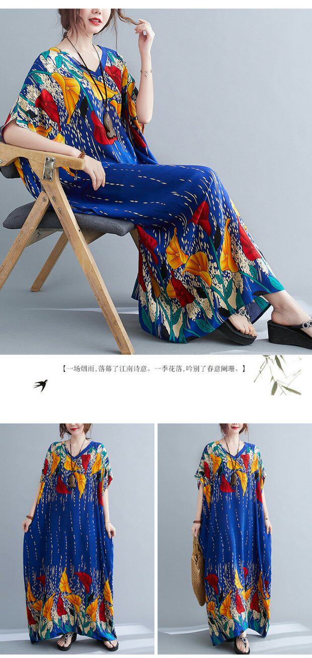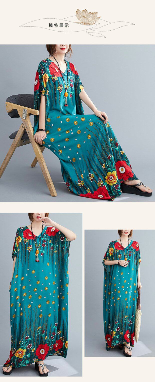 Летнее платье, длинная юбка, подходит для полных девушек, большой размер, свободный крой, по фигуре, V-образный вырез