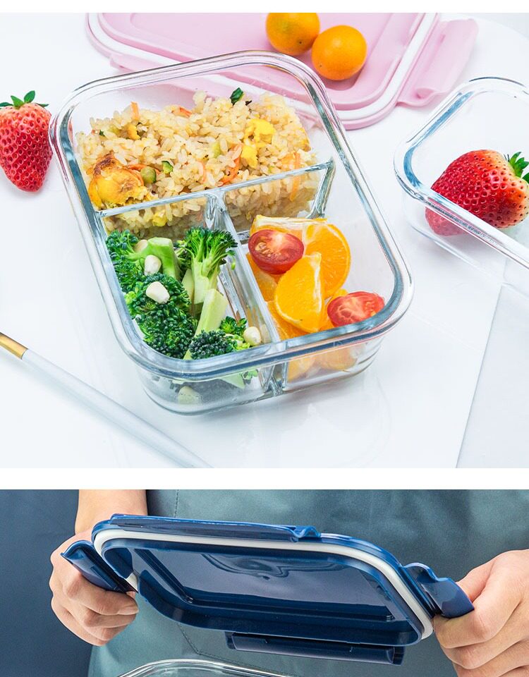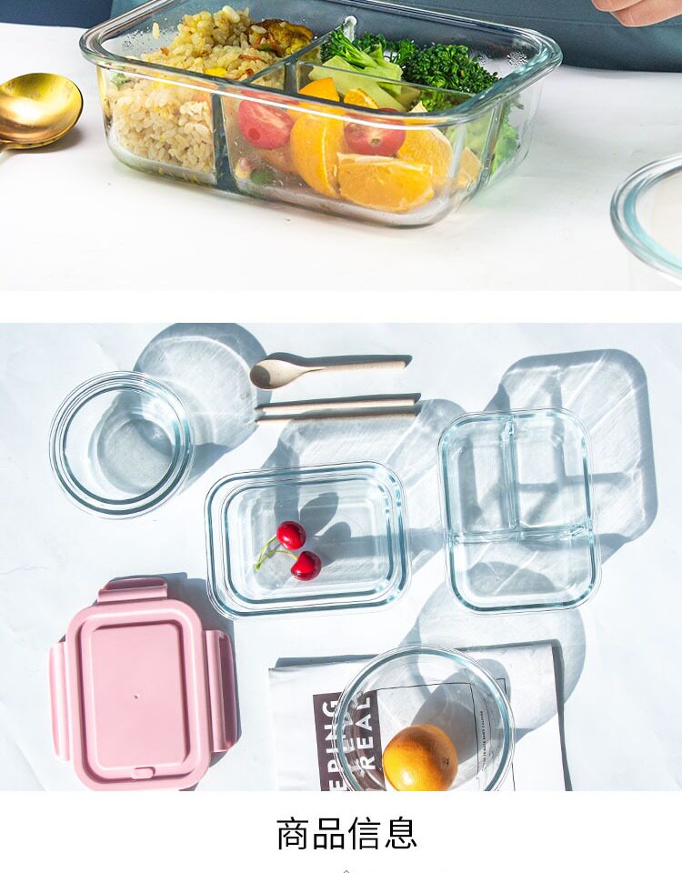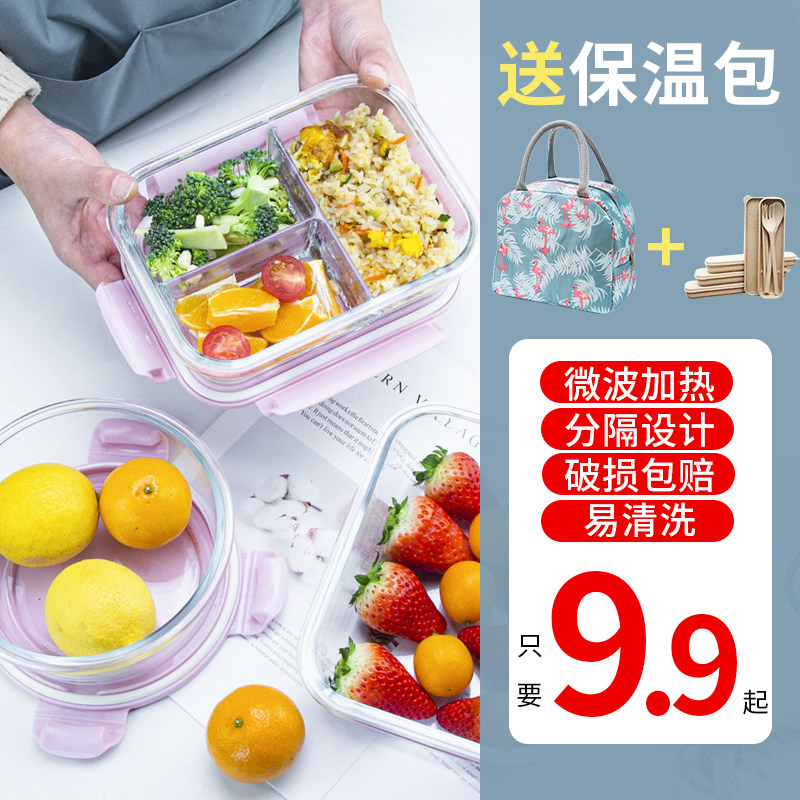 Стеклянная ланч -коробка может быть в микроволновке для обогрева офисных работников для офисных работников с студенческой коробкой для ланча фрукты Bento Fresh -Heating Box