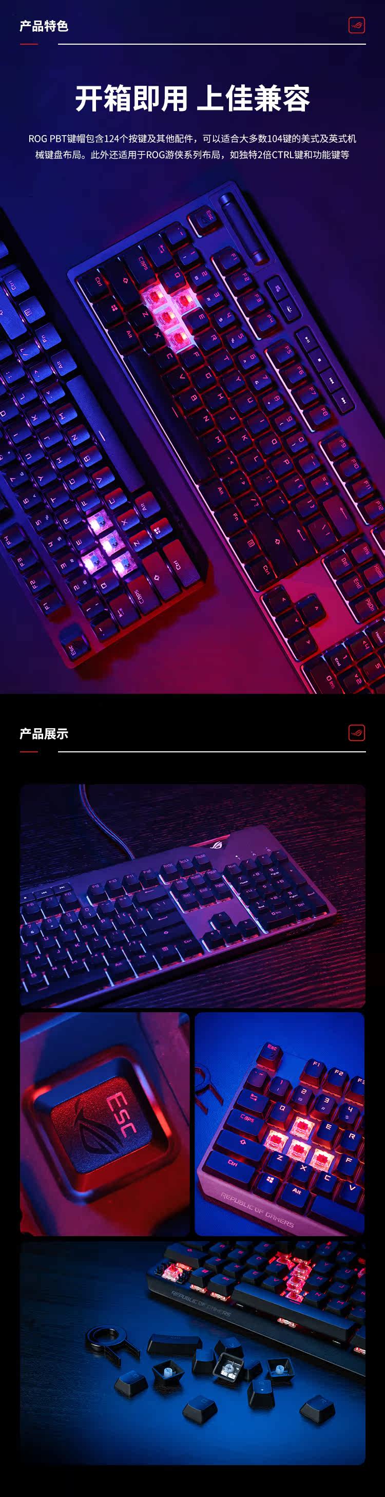 ROG Player Country PBT KeyCap 124 Ключ, совместимый с ROG Mechanical Keyboard Cherry Cross Cresess Mechanical Клавиатура