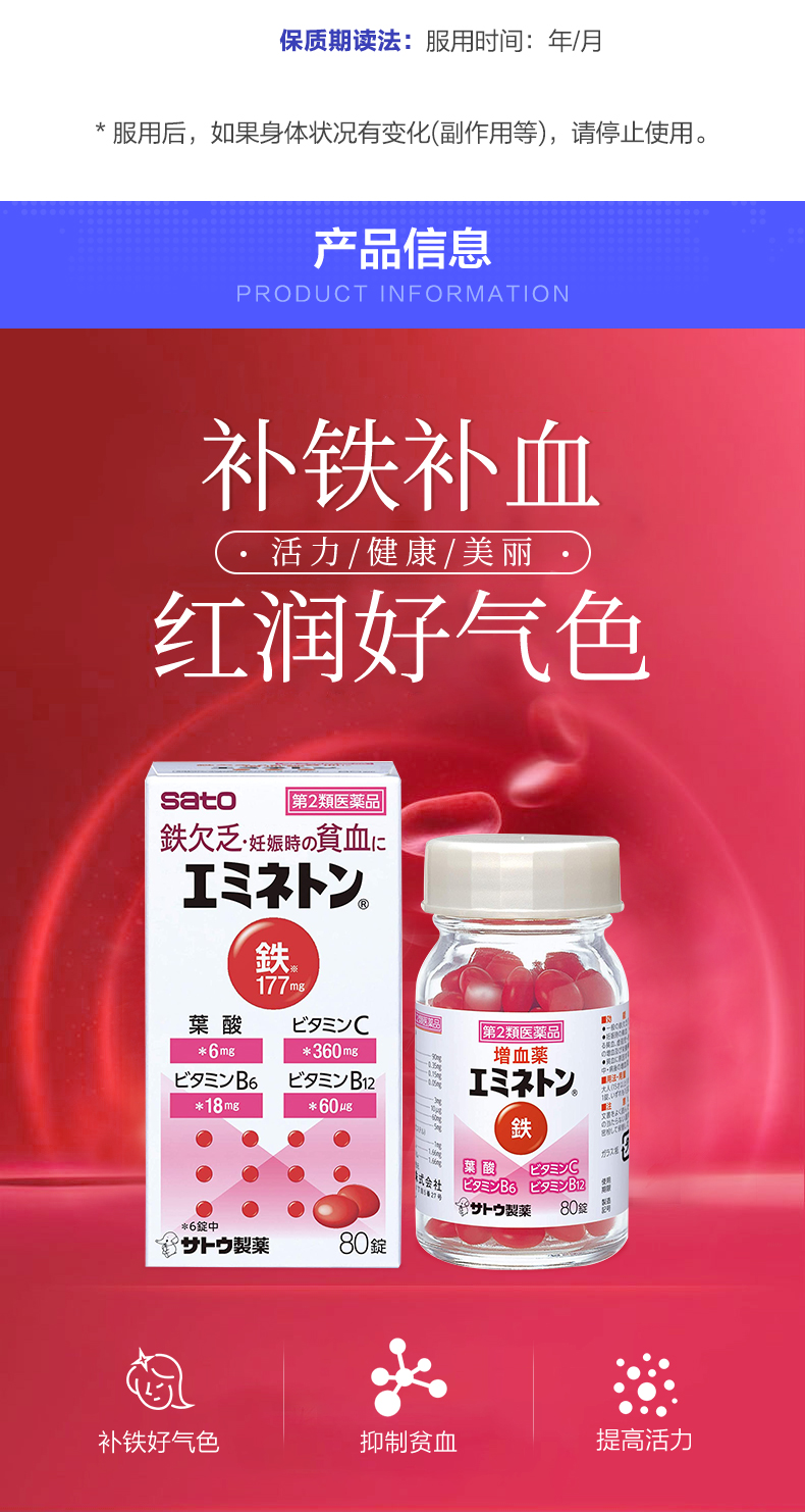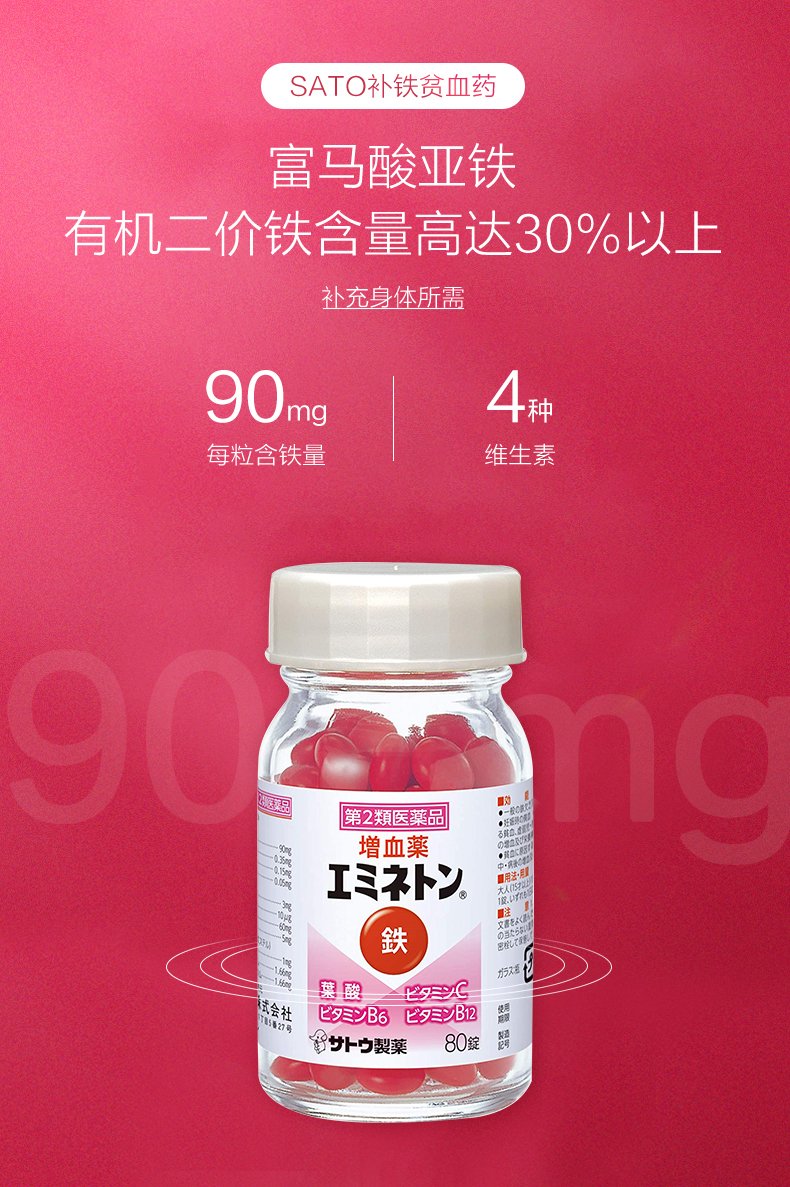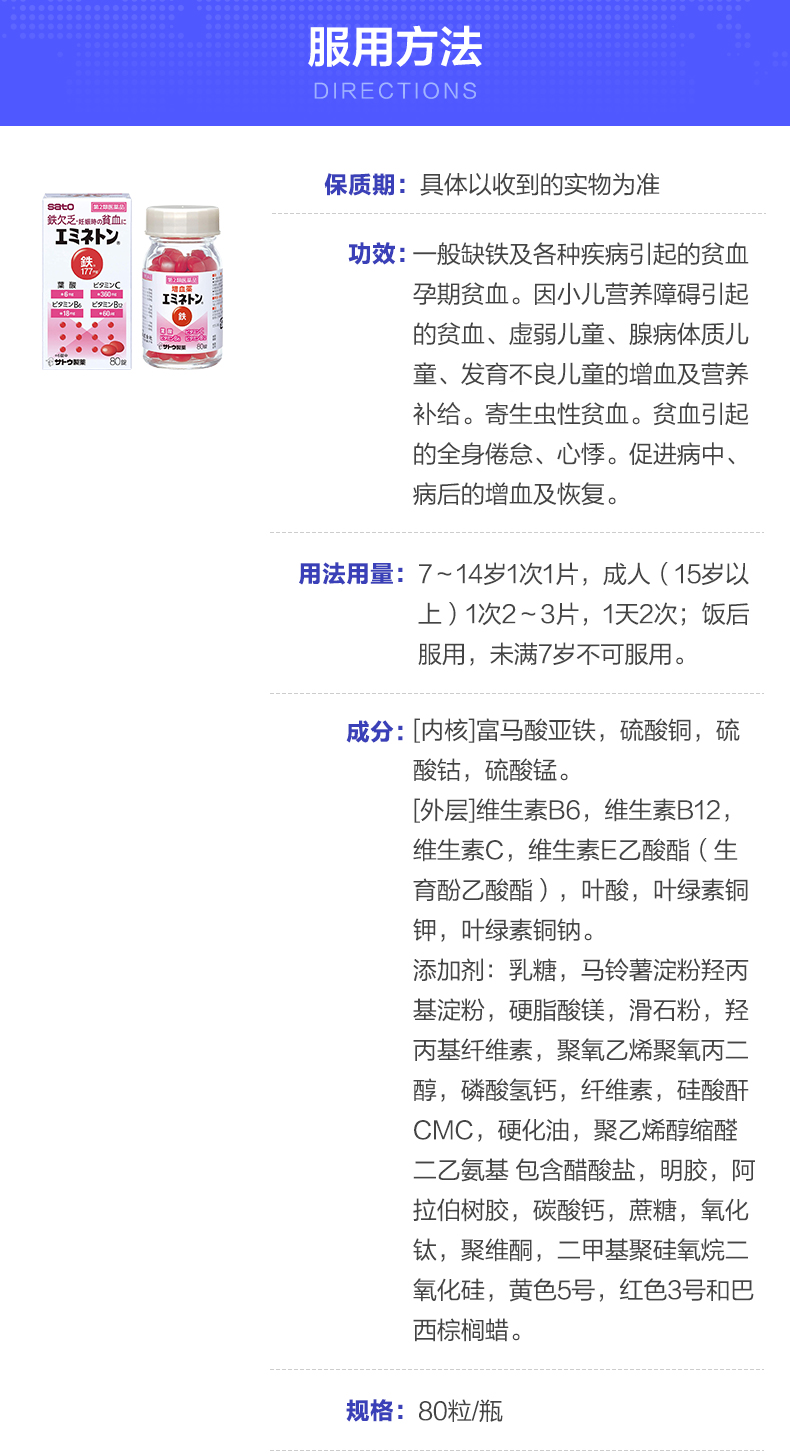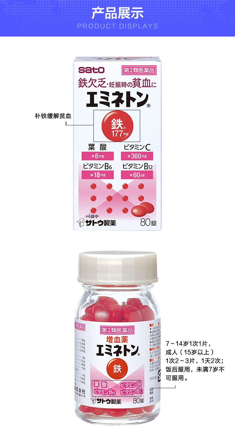 Японские сато фармацевтические таблетки Sato 80 Детские беременные женщины питающие циртирующие кровь, усиленные фолиевой кислотой, витамин