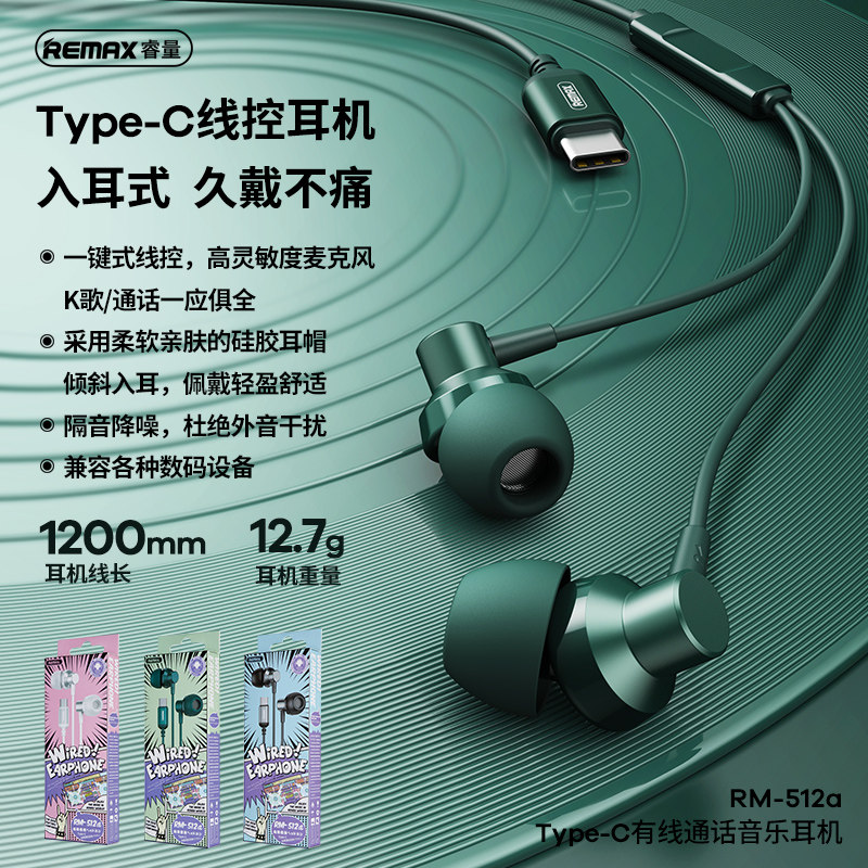 Remax Rui Liang Type-C Wired-уходы, удобные, безболезненные супер-тяжелые басы, высококачественные звонки, шумоподавляющие затычки для ушей подходят для Mate30p40 Xiaomi 10 Honor 20 Android Phone