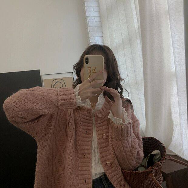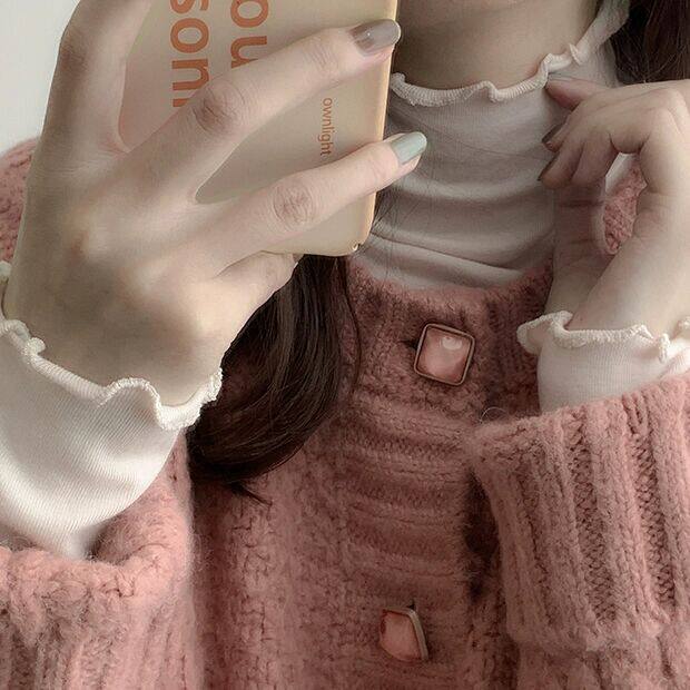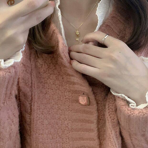 Демисезонные розовые румяна, шерстяной кардиган, рубашка, футболка для школьников и студентов, мягкий свитер, куртка, популярно в интернете