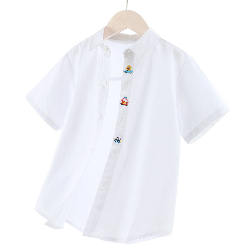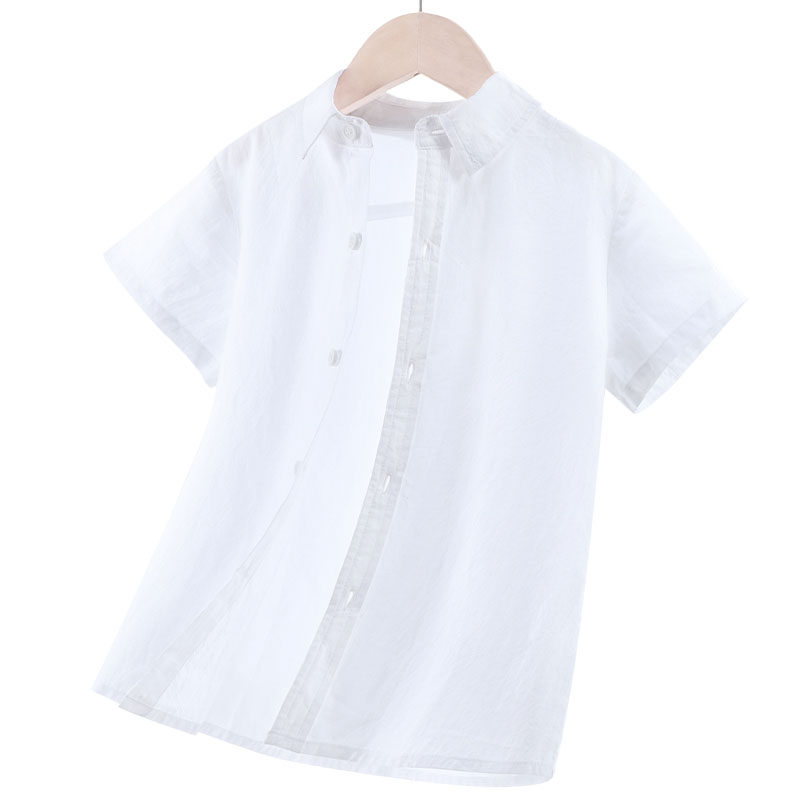 Детская белая летняя хлопковая рубашка для мальчиков, форма для школьников и студентов, костюм, короткий рукав, подходит для подростков