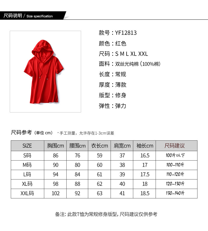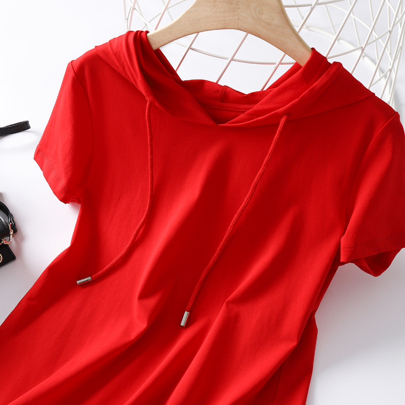 Tide, летняя хлопковая красная футболка с капюшоном, 2023, короткий рукав, облегающий крой