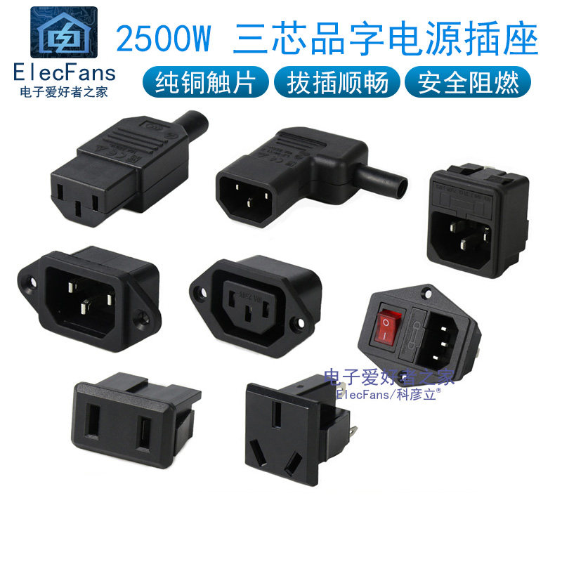 3-контактная розетка с тремя отверстиями, держателем предохранителя и утолщенной встроенной розеткой переменного тока.