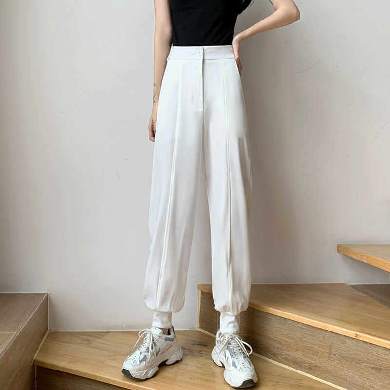 Белые штаны, костюм для отдыха, высокая талия, в корейском стиле, свободный крой