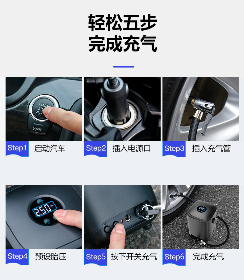 Портативный воздушный насос, электрические беспроводные шины для автомобиля, высокая мощность, 12v