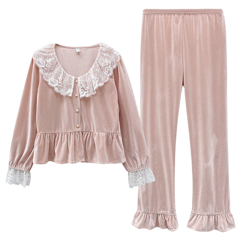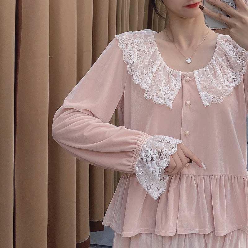 Бархатная осенняя пижама, ретро комплект, лонгслив, французский стиль