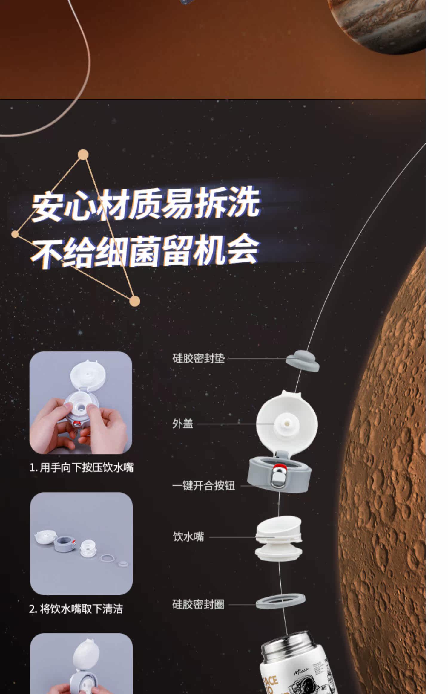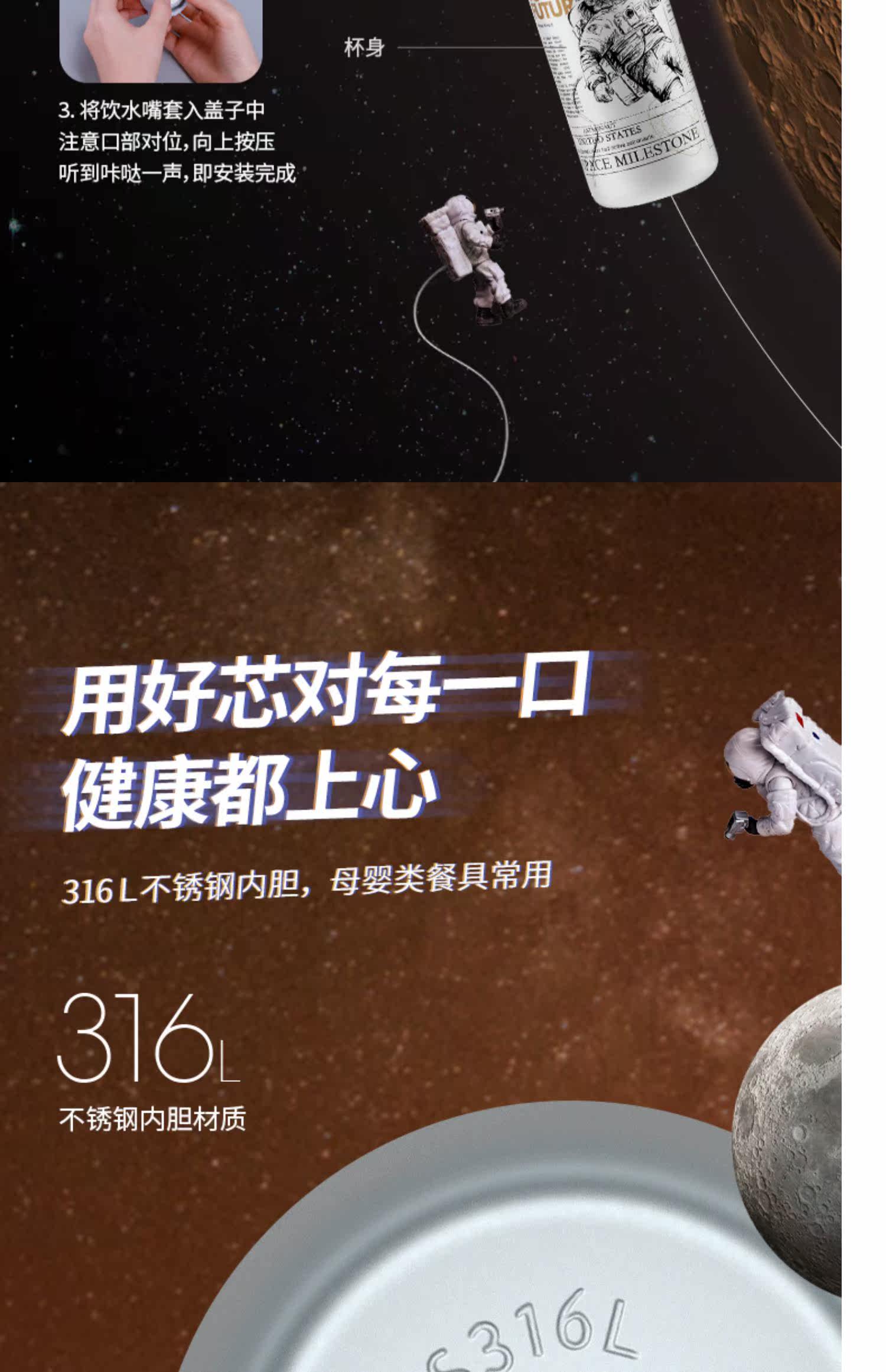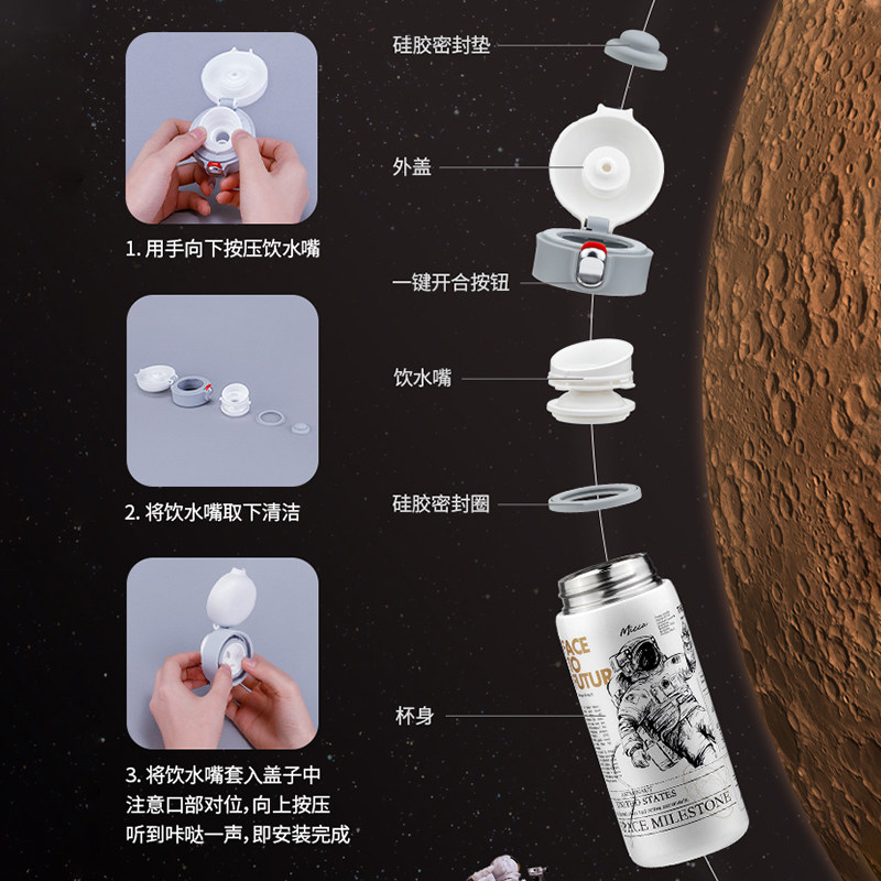 Вместительный и большой детский стакан подходит для мужчин и женщин из нержавеющей стали, портативный космонавт для школьников, простой и элегантный дизайн