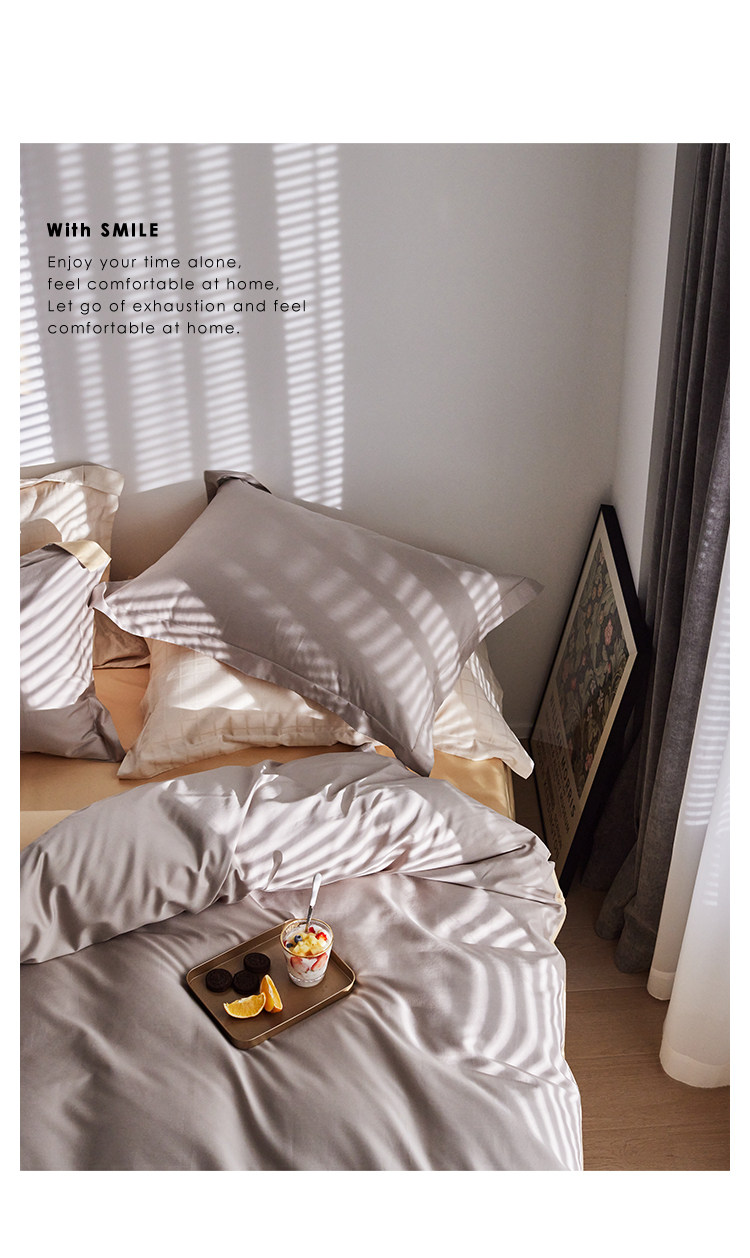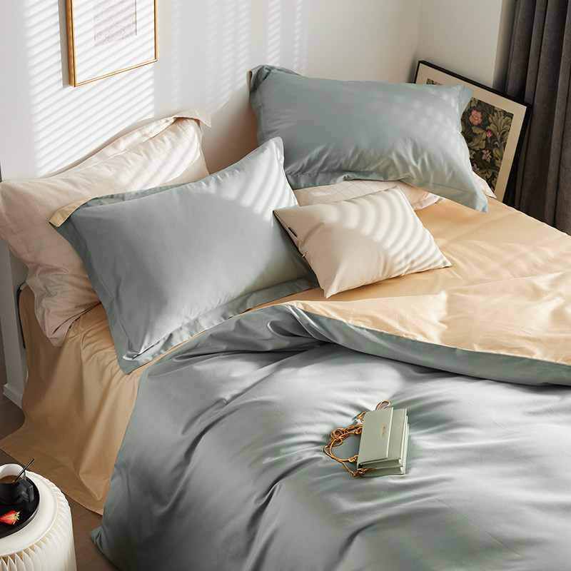 Комплект, хлопковый пододеяльник, простыня, покрывало, 140 шт, легкий роскошный стиль, простой и элегантный дизайн, 4 предмета, 4 шт