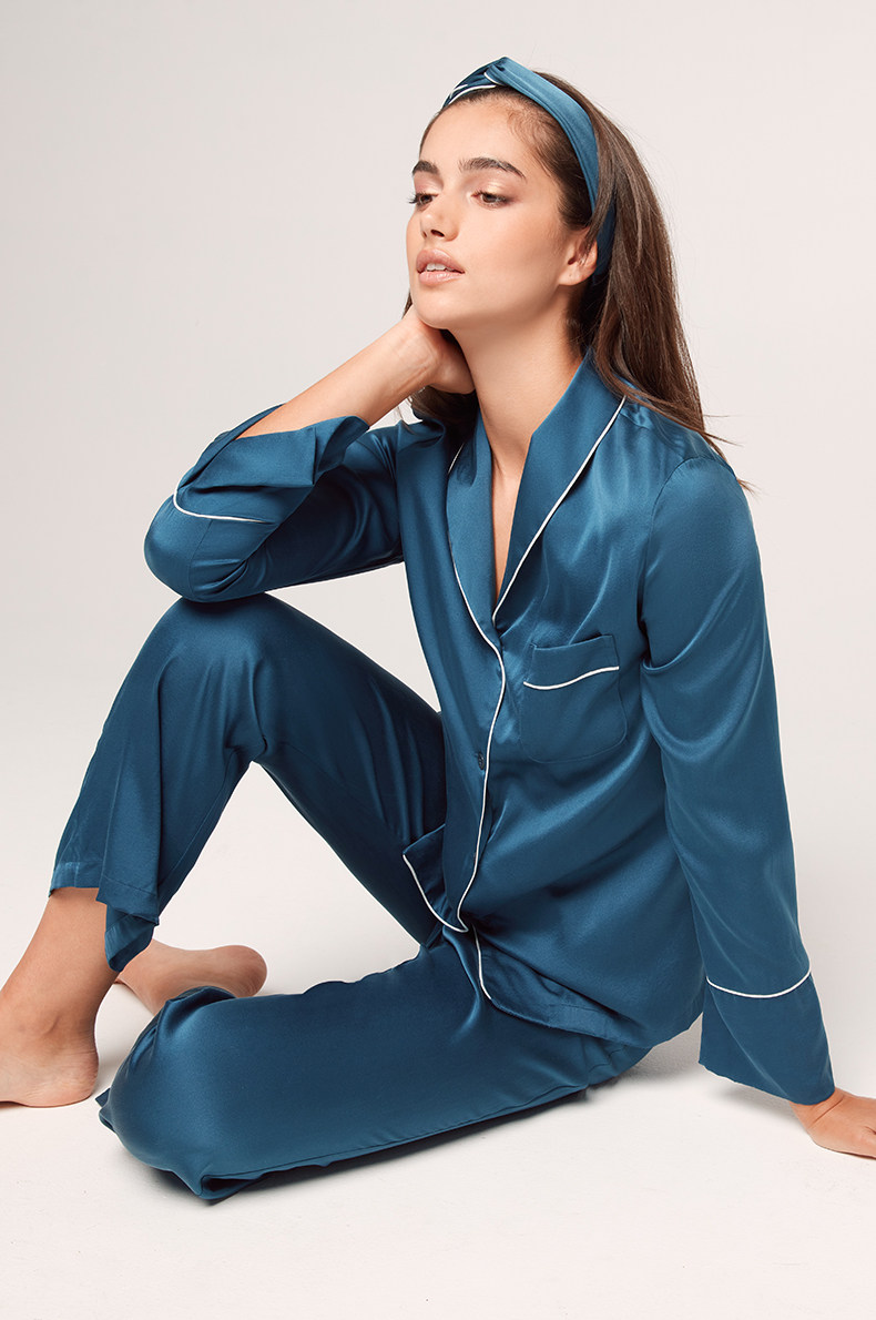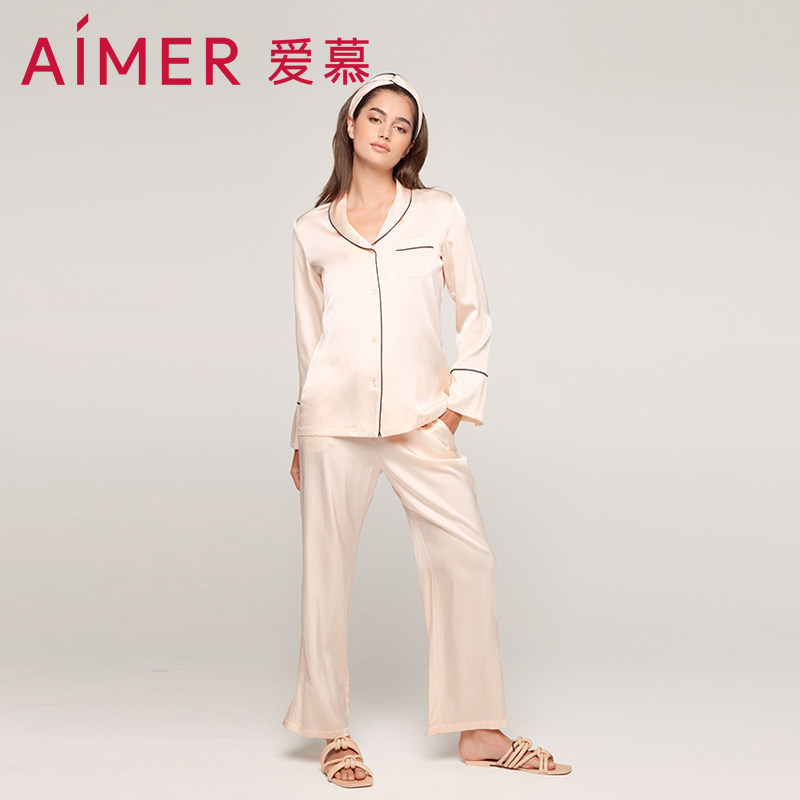 爱慕 Осенняя пижама, шелковый лонгслив, комплект, V-образный вырез, изысканный стиль