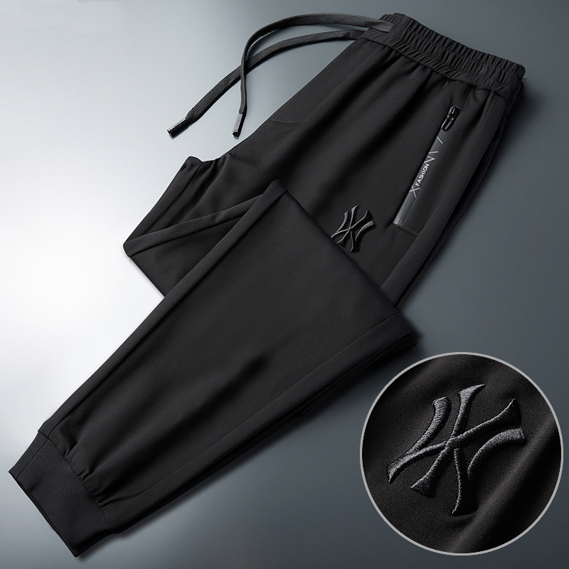 Демисезонные шелковые элитные дышащие штаны для отдыха, с вышивкой