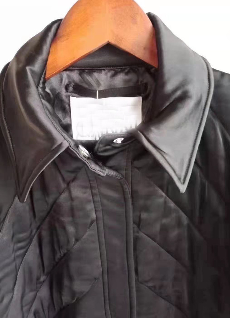 Хорошие товары Специальная продажа скандинавская дизайнер черная атласная краситель хлопковая куртка женская 3559