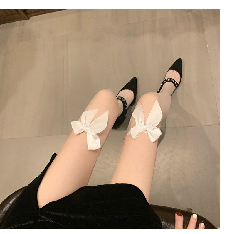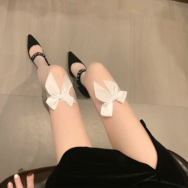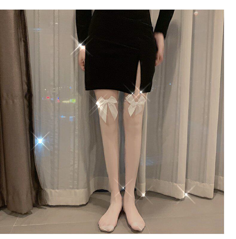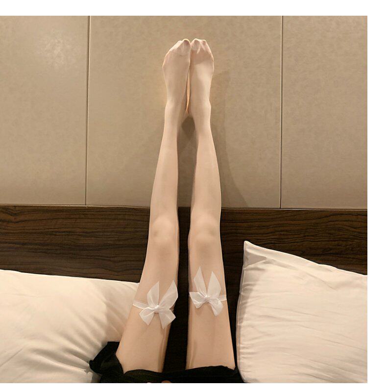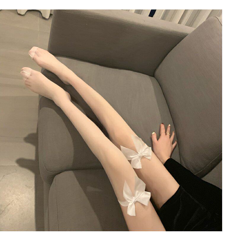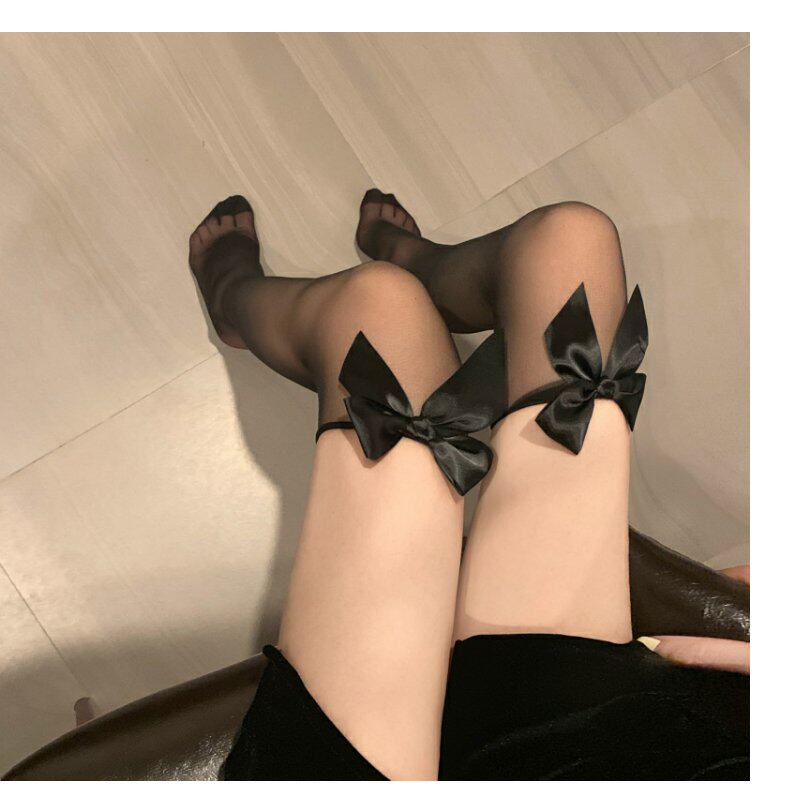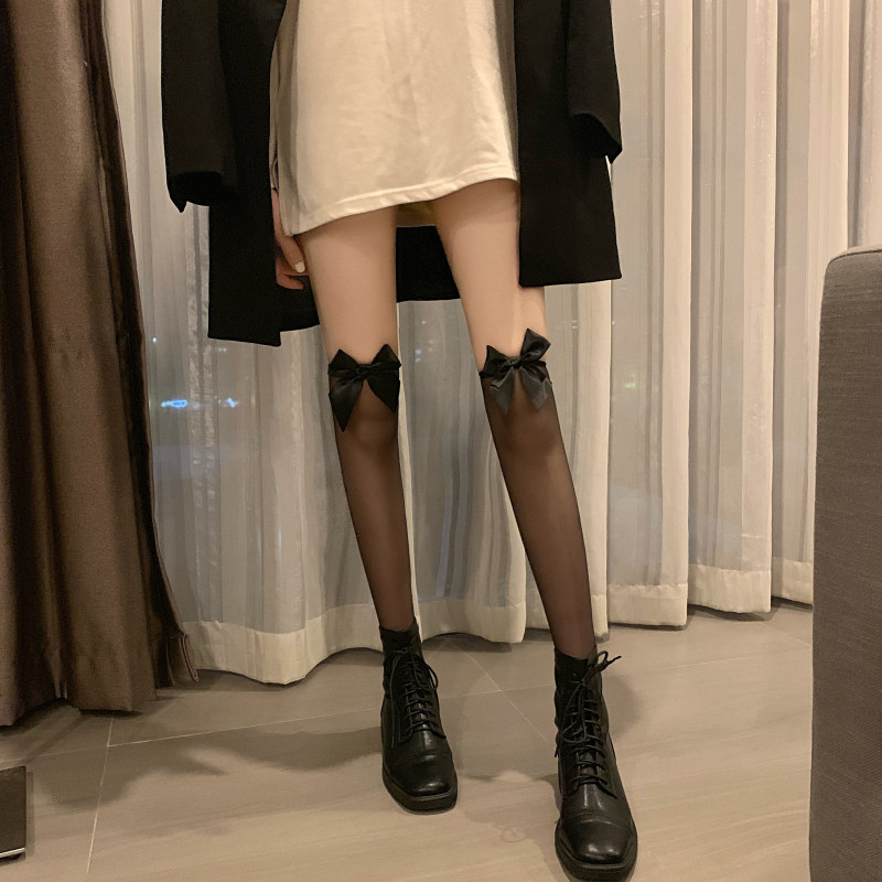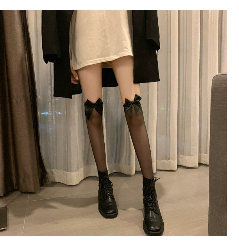 Сексуальные базовые летние гольфы с бантиком, тонкие эластичные колготки, средней длины, в обтяжку