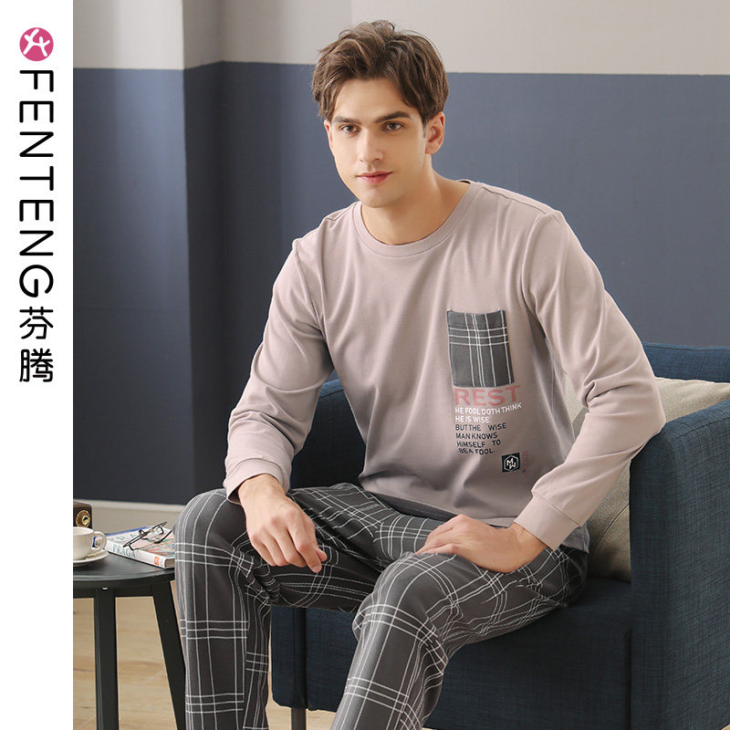 芬腾 Хлопковая пижама, лонгслив, хлопковые летние мужские штаны, в корейском стиле