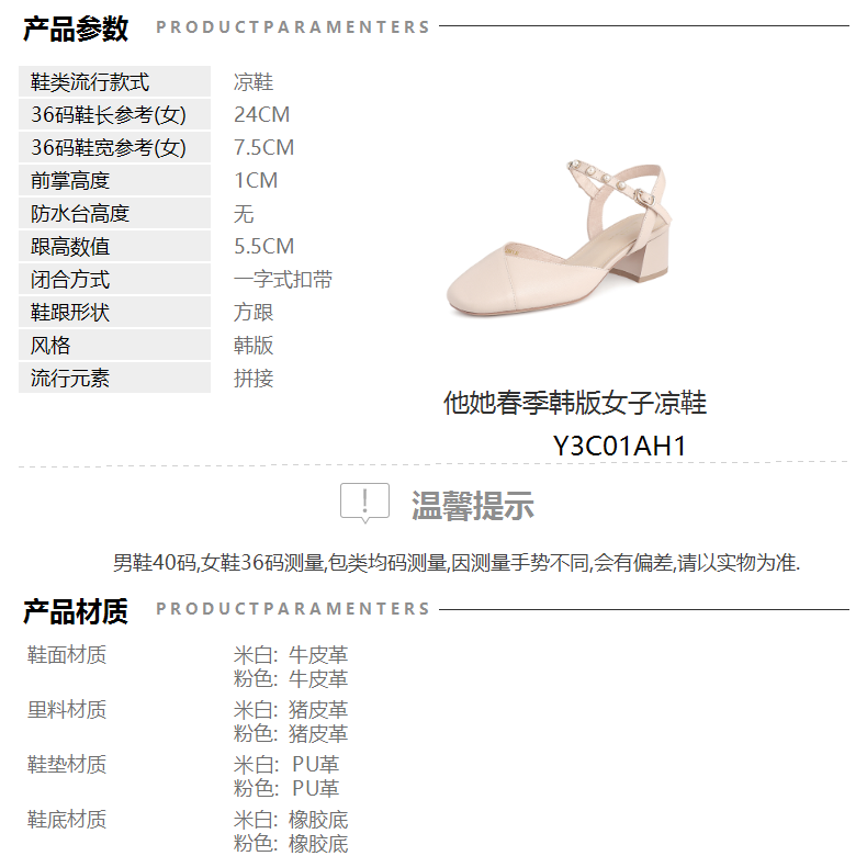 Тата, ее весенняя и летняя стойка, такая же удобная модная жемчужная украшение, бату, пустые сандалии, каблук y3c01ah1