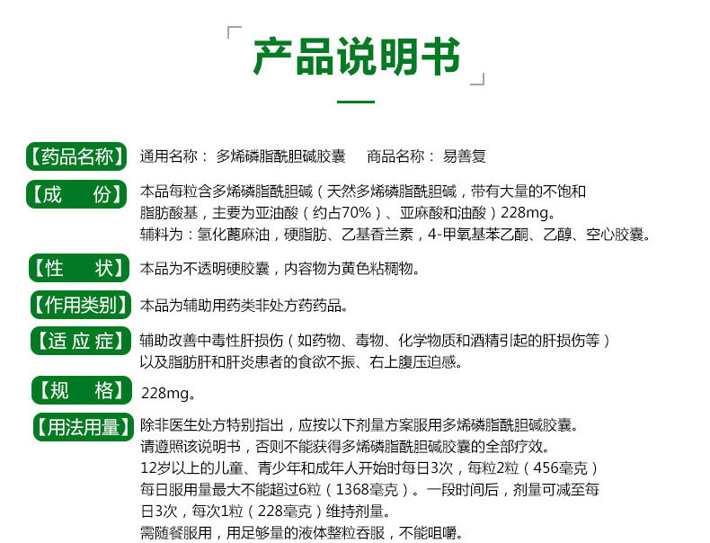 易善复 Полимиэльные фосфолипидные щелочные капсулы 24 Гепатит Рвотация печени, жирное, повреждение печени печени взрослые