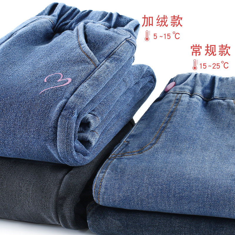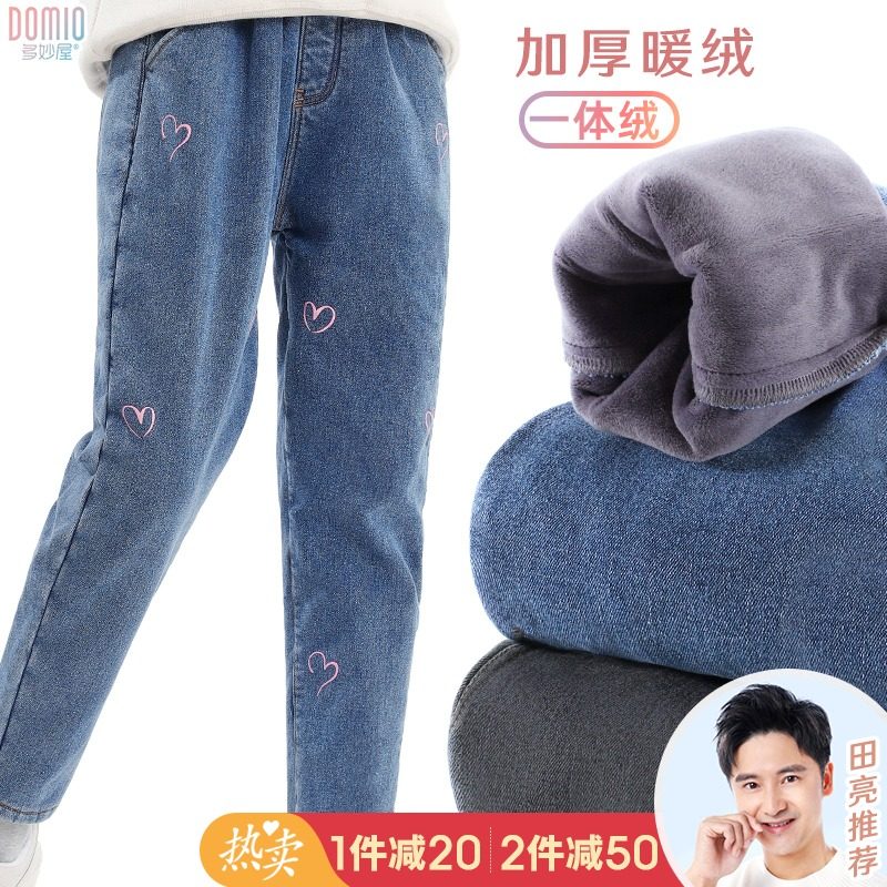 Флисовые детские джинсы с начесом, утепленные штаны, подходят для подростков, свободный крой