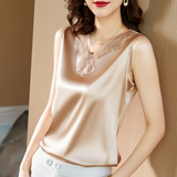 Шелковая весенняя кружевная майка топ, футболка без рукавов, базовый приятный телу костюм, V-образный вырез, оверсайз