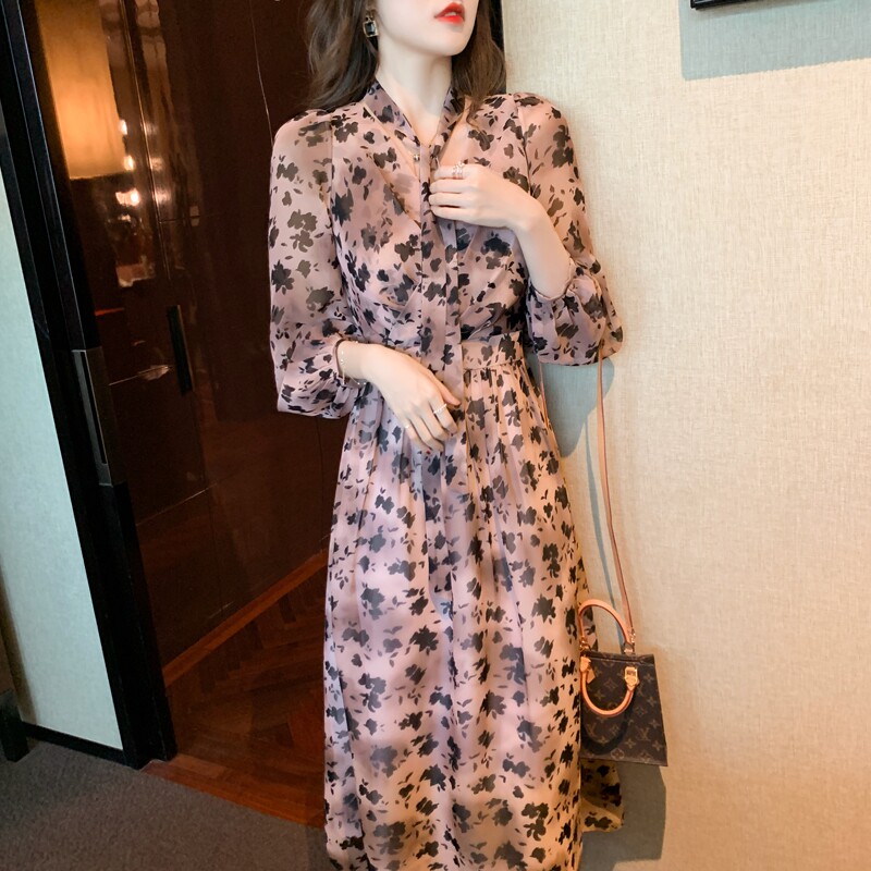 Весеннее платье, приталенная базовая длинная юбка, коллекция 2021, в цветочек, подходит для подростков