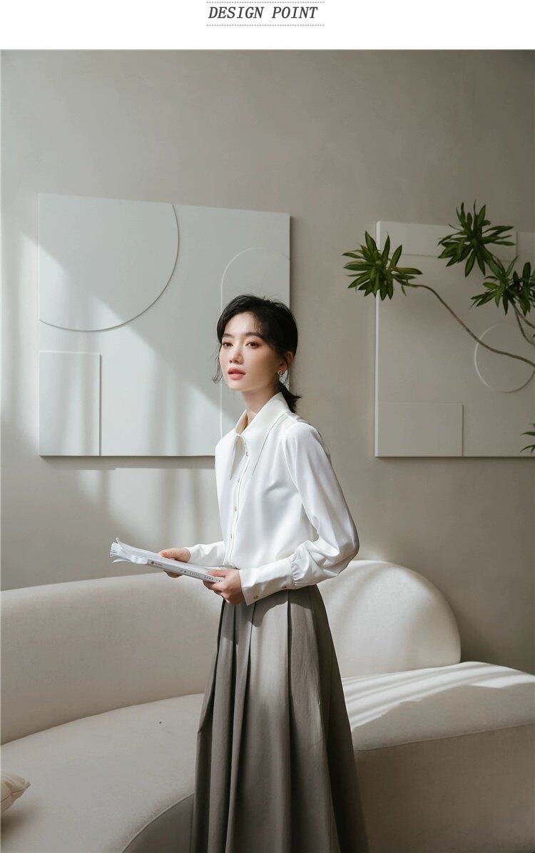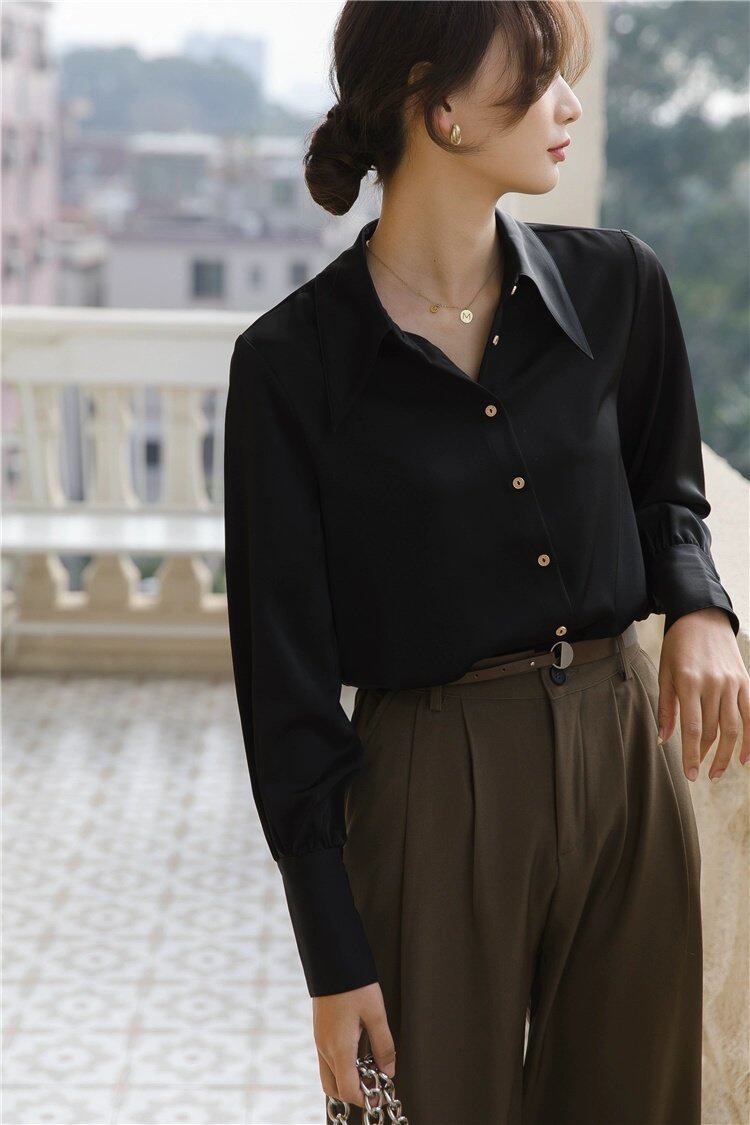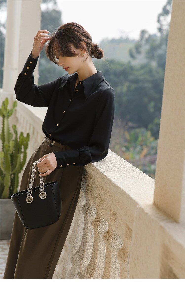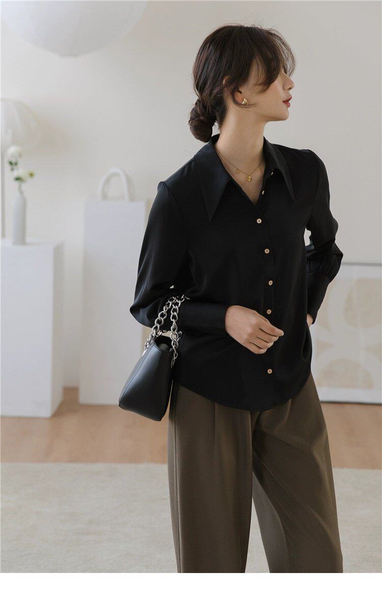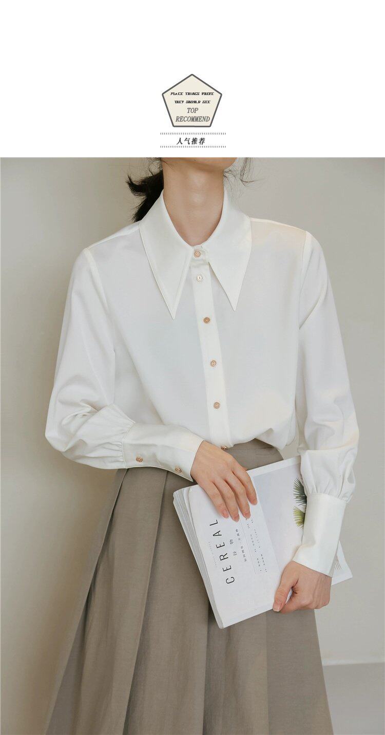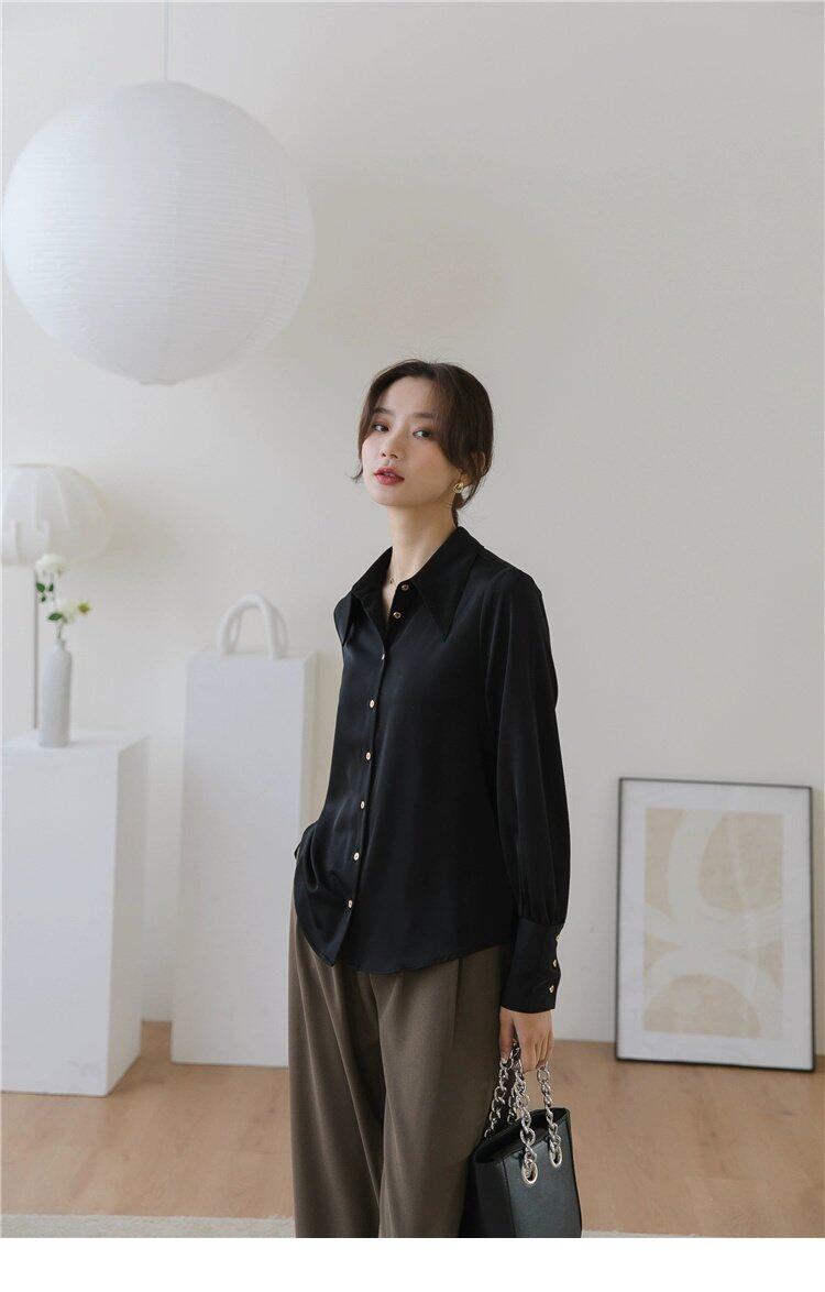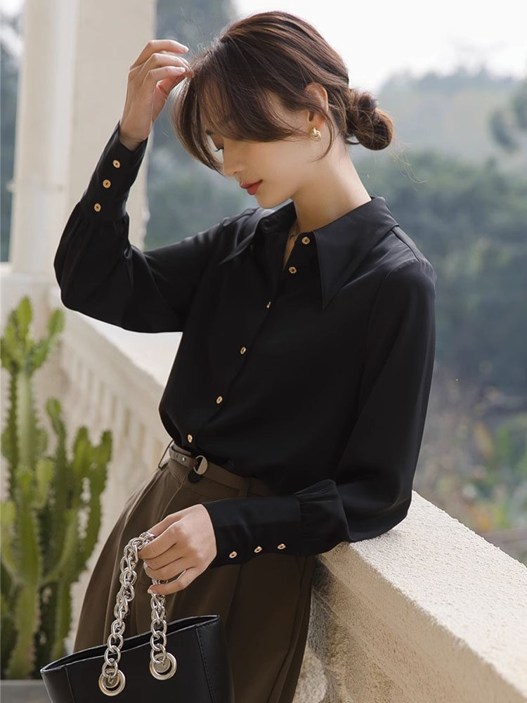 Осенняя небольшая дизайнерская рубашка, тренд сезона, французский стиль, воротник поло, в западном стиле