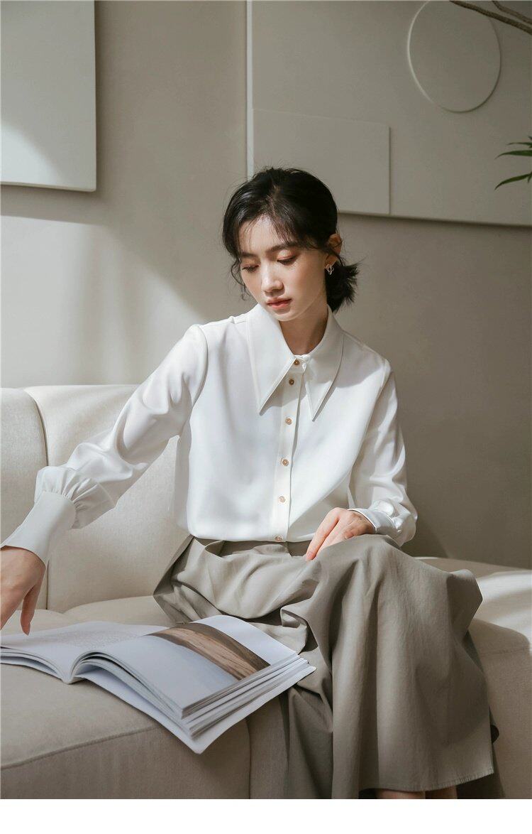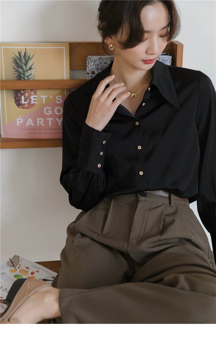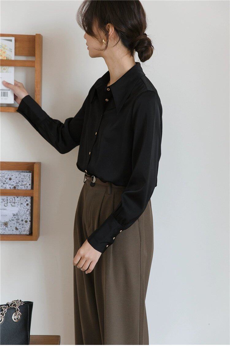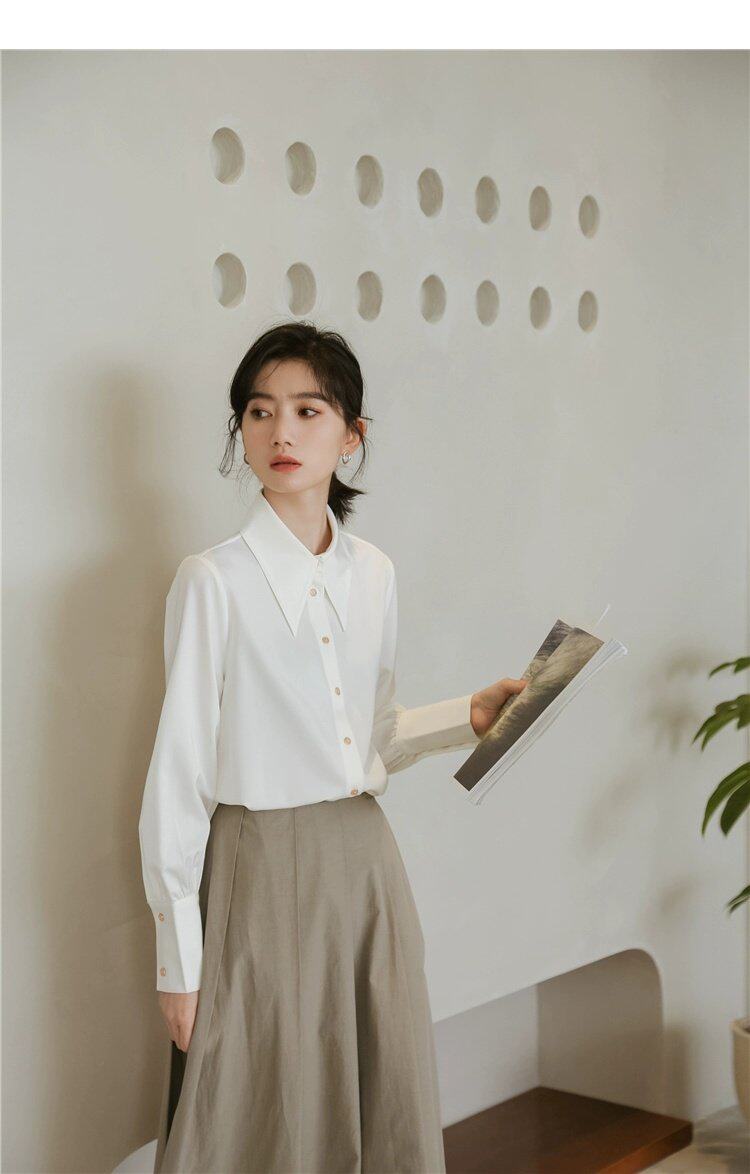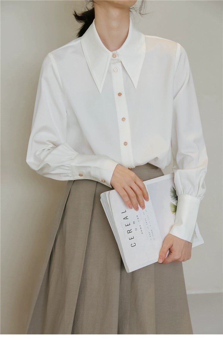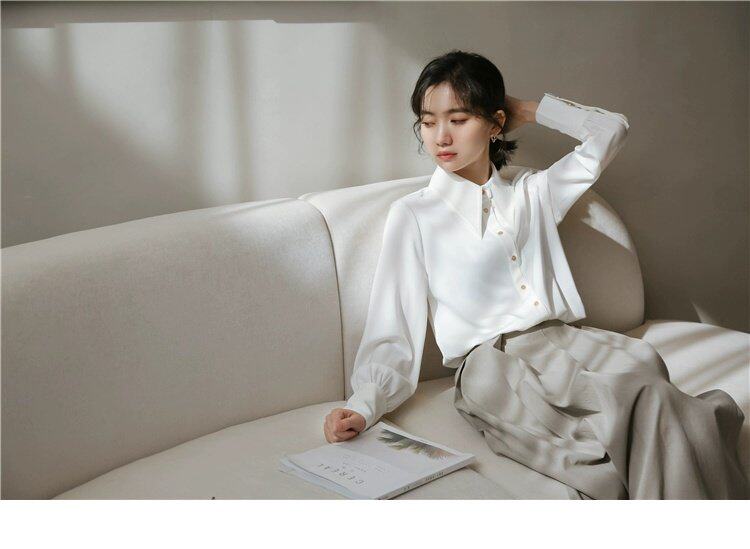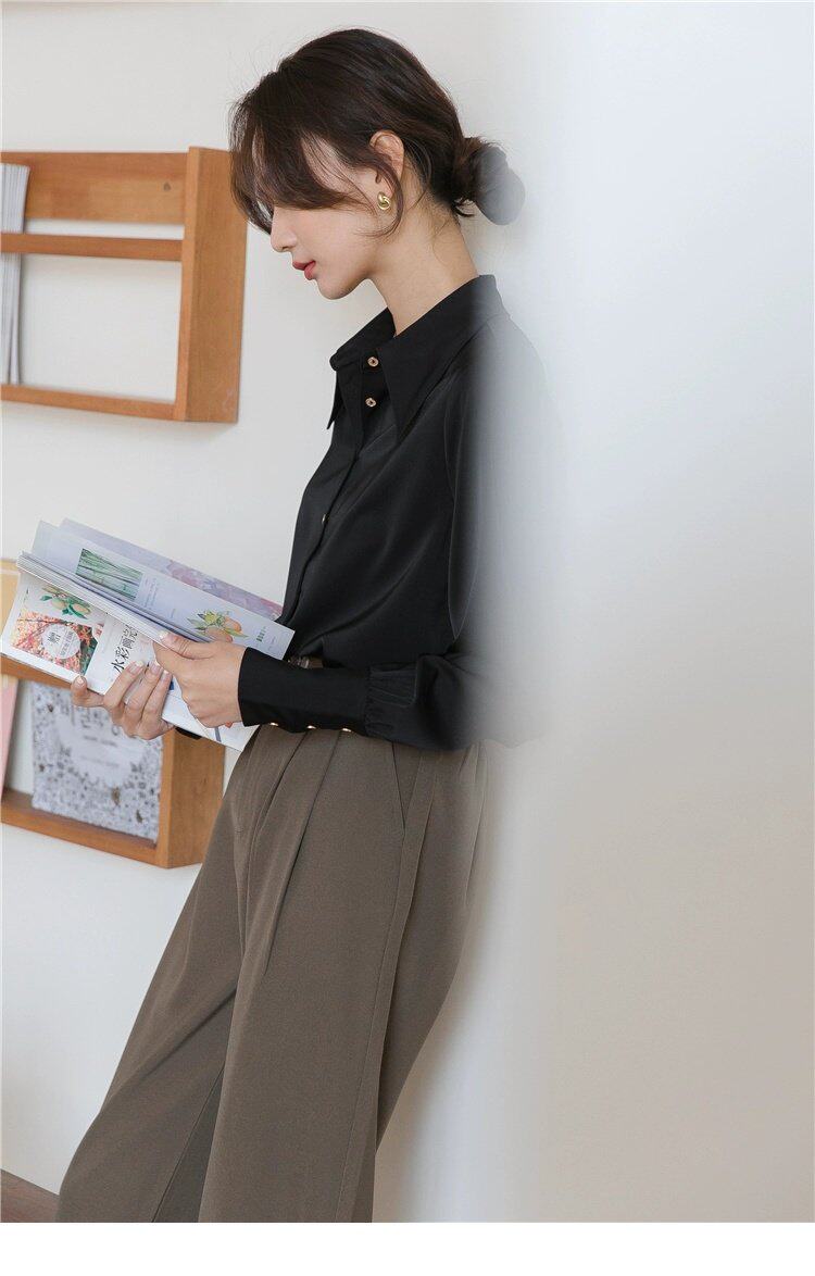 Осенняя небольшая дизайнерская рубашка, тренд сезона, французский стиль, воротник поло, в западном стиле