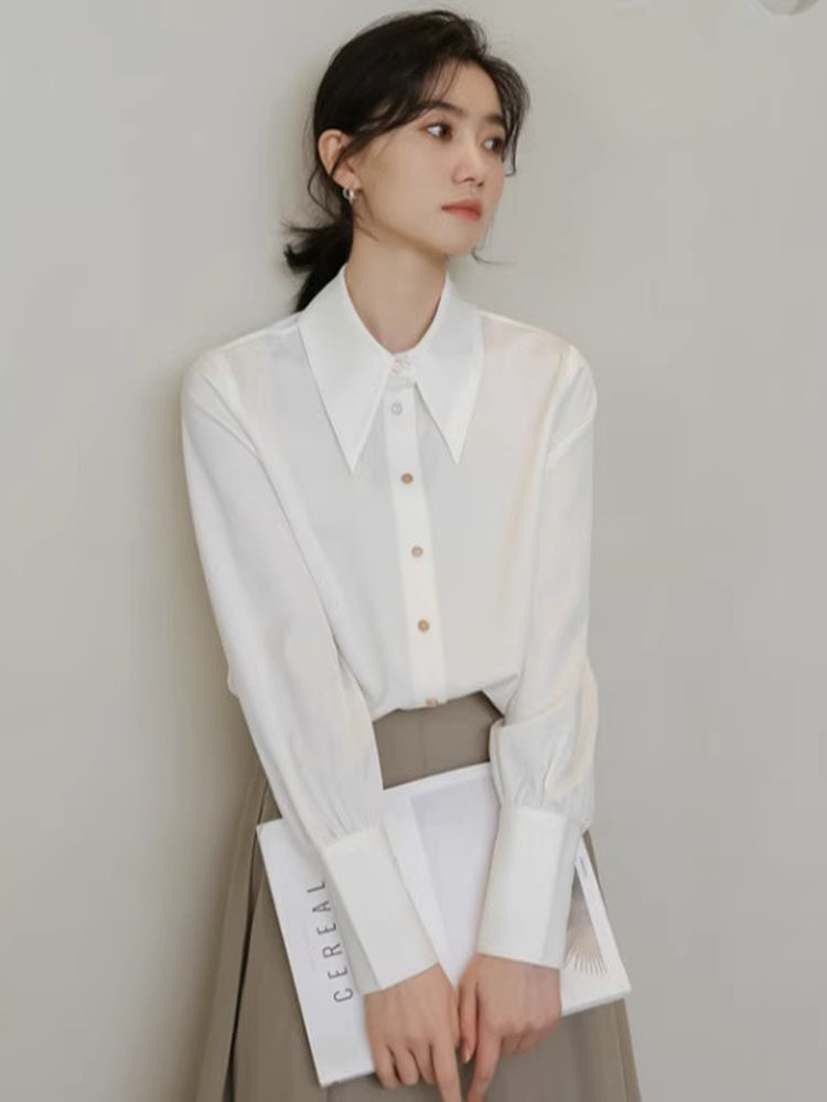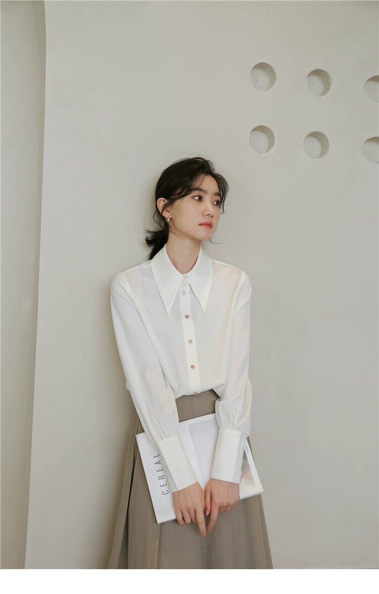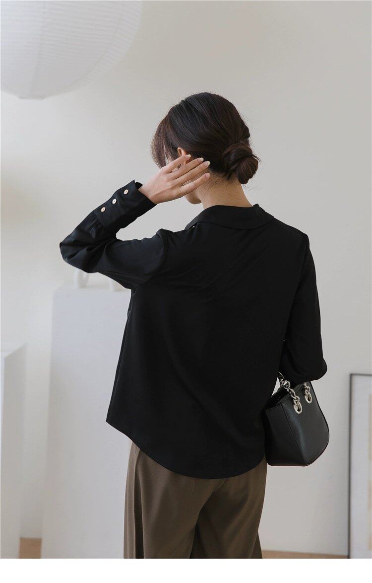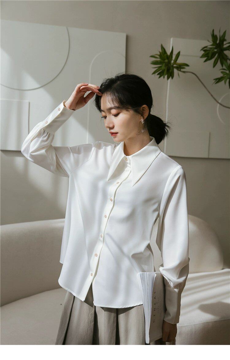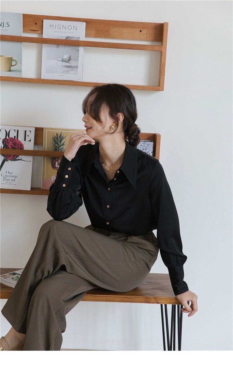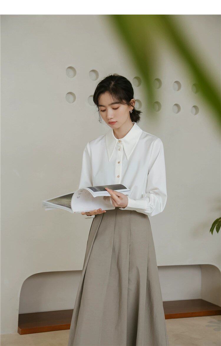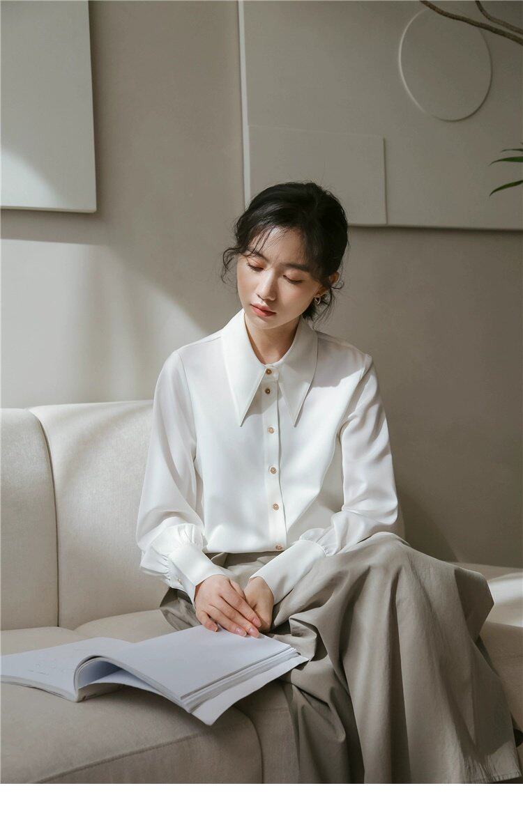 Осенняя небольшая дизайнерская рубашка, тренд сезона, французский стиль, воротник поло, в западном стиле