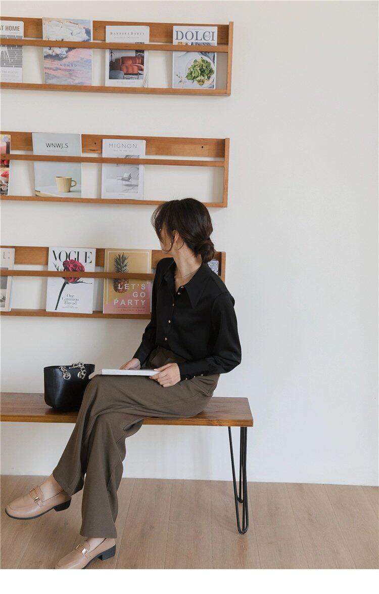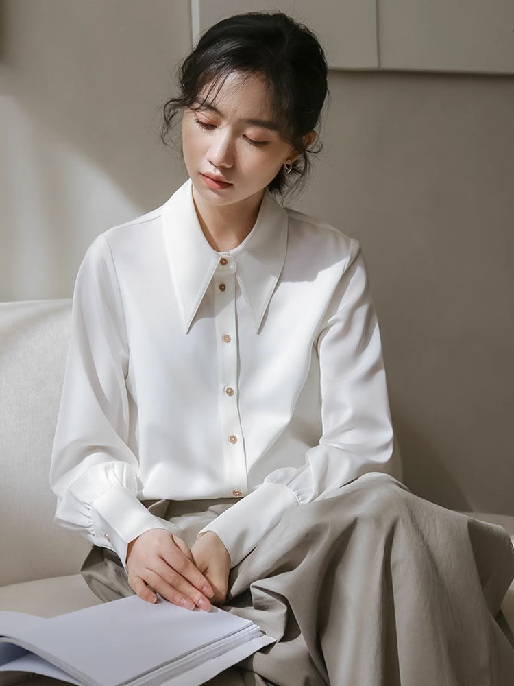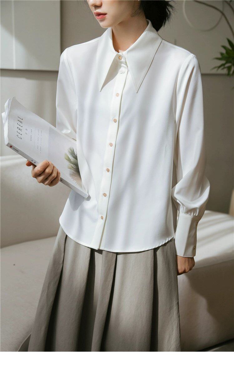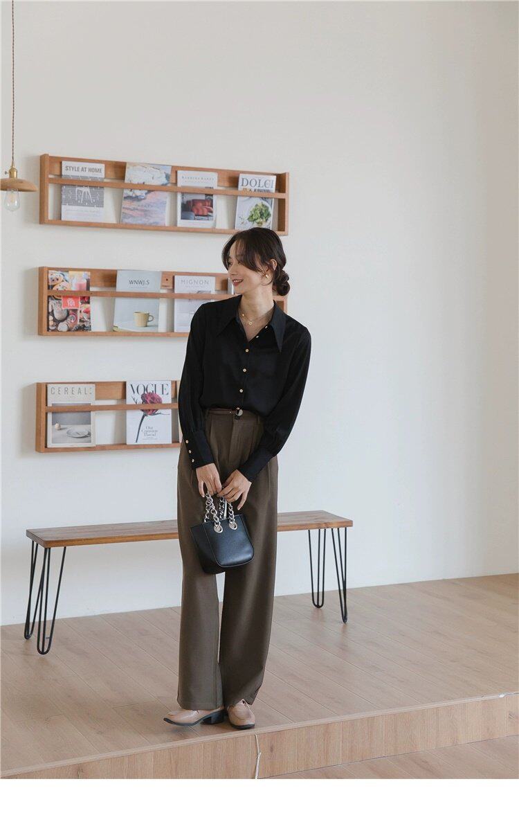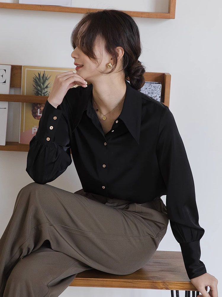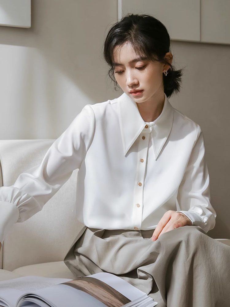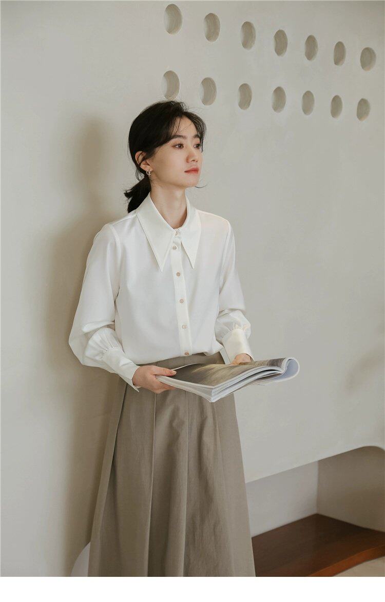 Осенняя небольшая дизайнерская рубашка, тренд сезона, французский стиль, воротник поло, в западном стиле