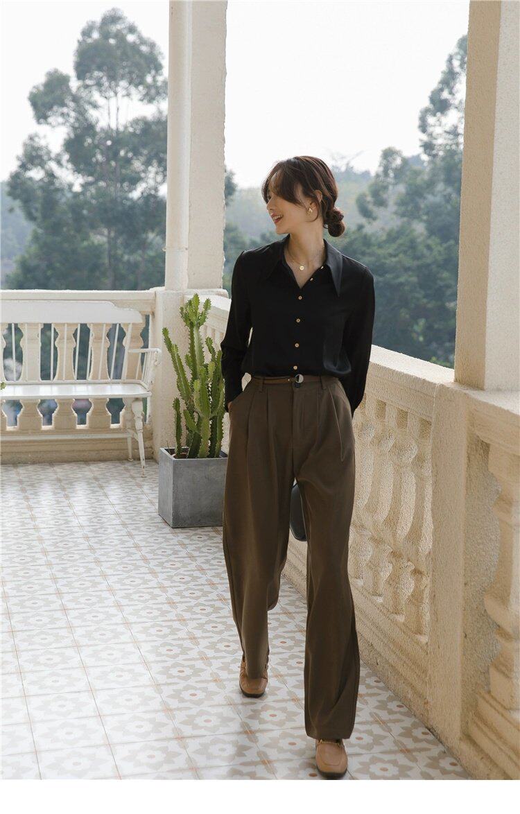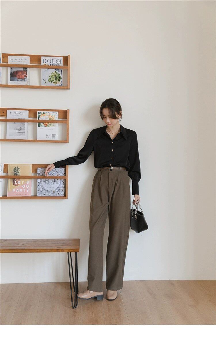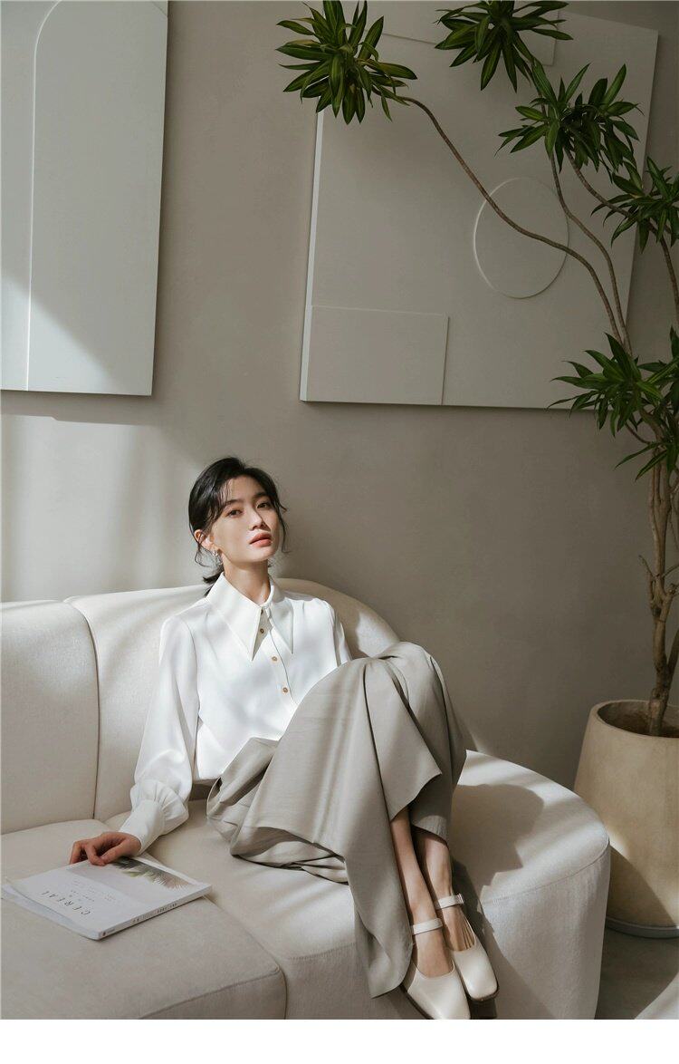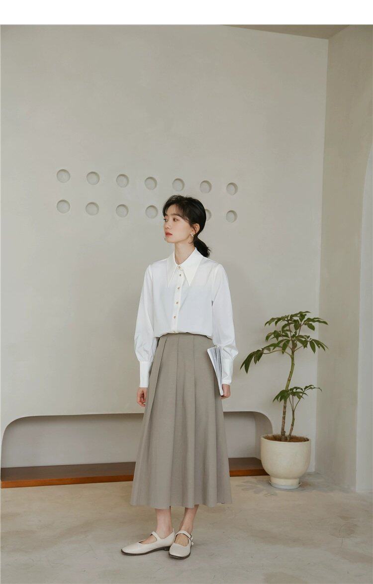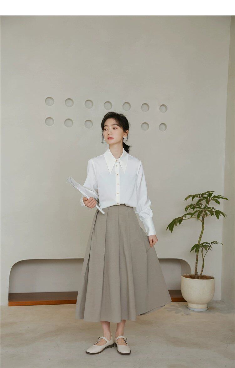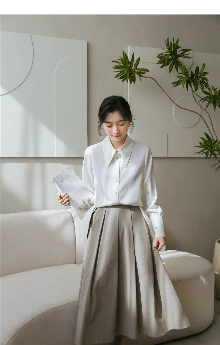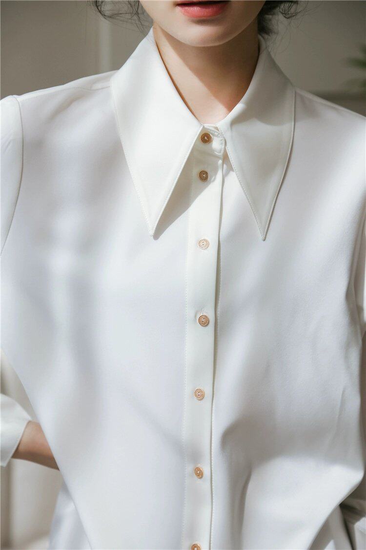 Осенняя небольшая дизайнерская рубашка, тренд сезона, французский стиль, воротник поло, в западном стиле