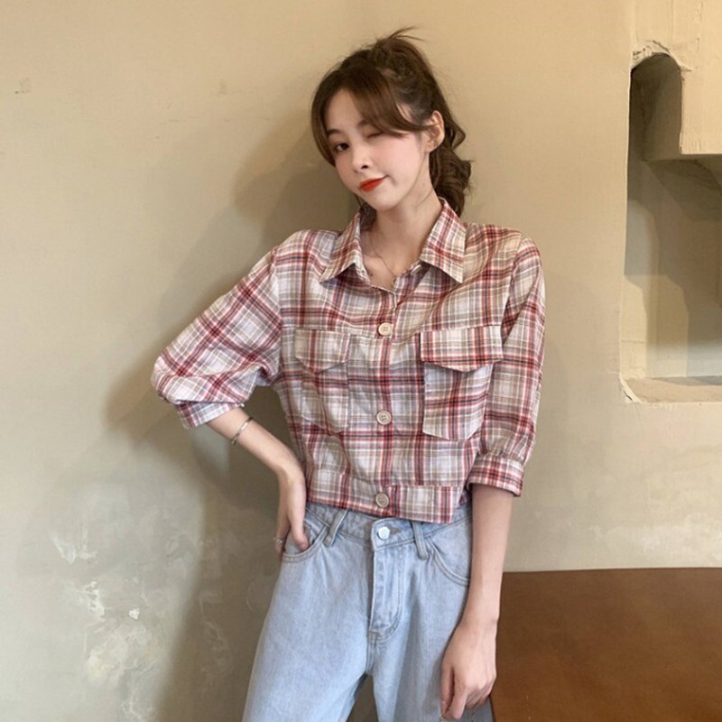 Демисезонная короткая ретро модная рубашка, 2021 года, подходит для подростков