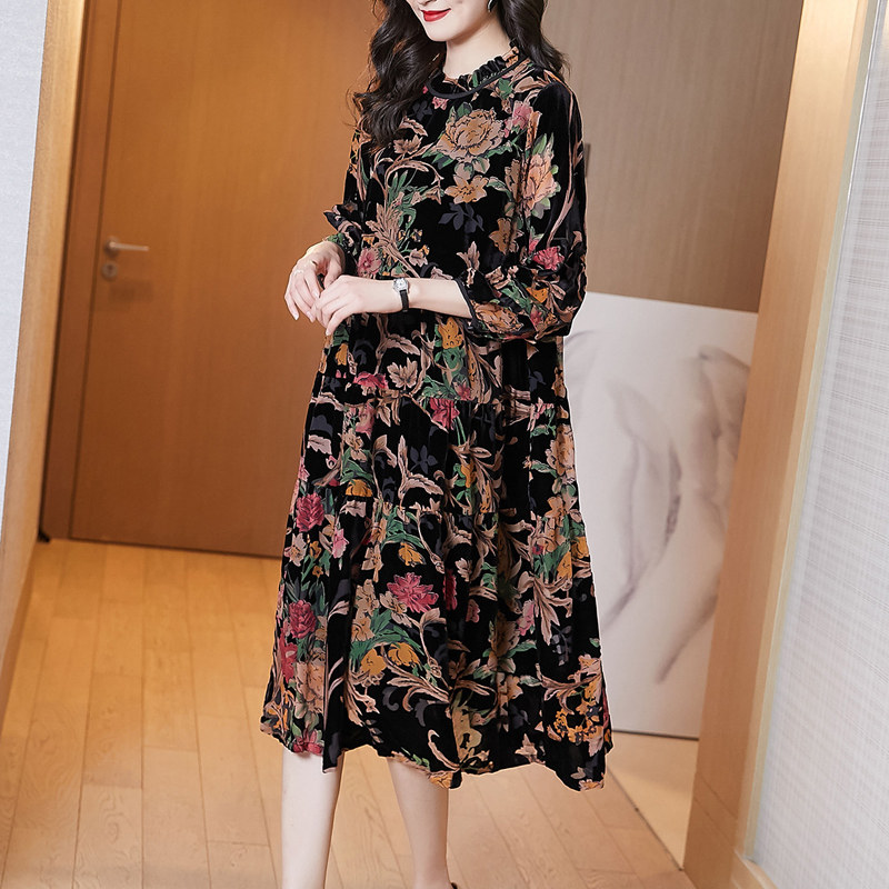 Весеннее бархатное шелковое платье, коллекция 2021, городской стиль, 40, 50 лет