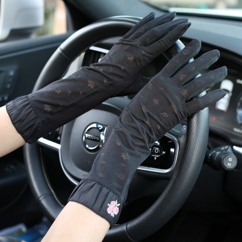 Дышащие кружевные женские демисезонные ультратонкие тонкие нескользящие нарукавники, перчатки, средней длины, защита от солнца