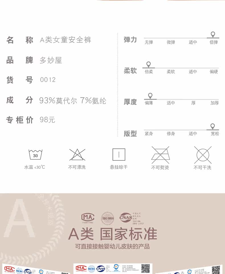 | Справочная высота: | 110 Подходит для 100-110 см [национальный стандарт класса A], 120 Подходит для 110-120 см [Lanjing Modal's Delicate и Skinly Friends], 130 подходит на рост 120-130 см [изысканные кружевные ножки без завивки], 140 подходит для роста 130-140 см [0 формальдегида, без флуоресцентного агента], 150 подходит на рост 140-150 см [двойная эластичность без слипания], 160 подходит для роста 150-160 см [анти-блеск, гладкий и прохладный] |