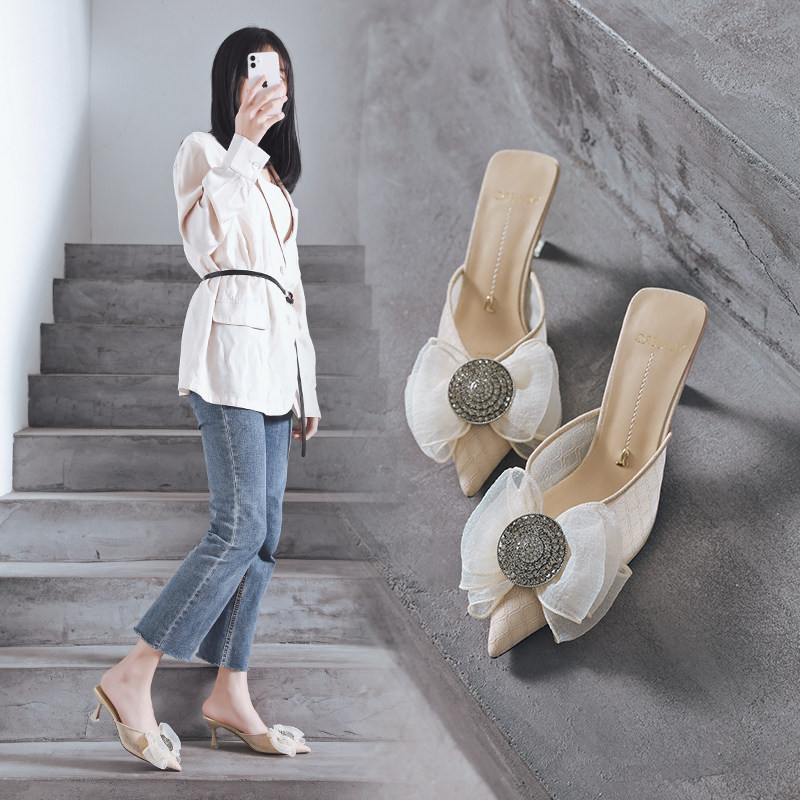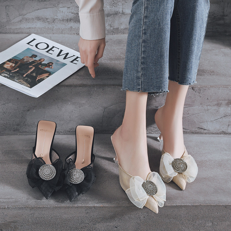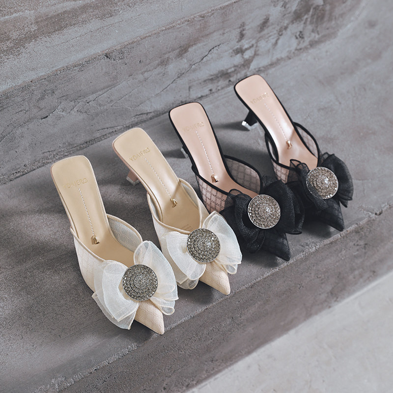 一代佳人 Сетчатые тапочки с бантиком, коллекция 2021, тренд сезона