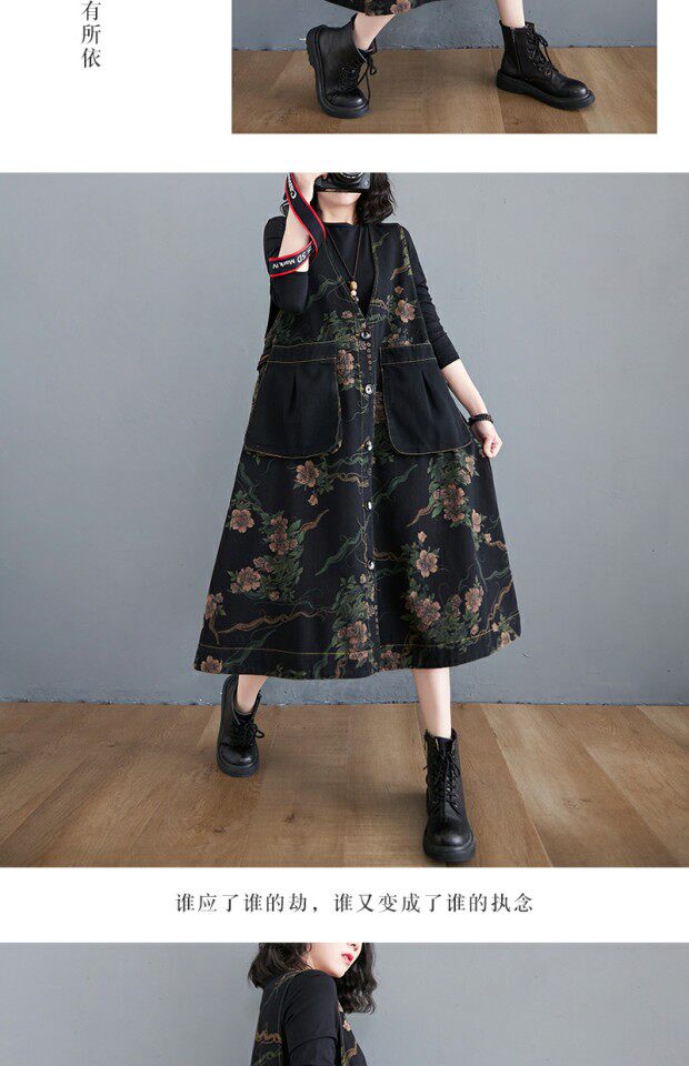 Ретро джинсовое платье, в корейском стиле, большой размер, свободный крой, в западном стиле