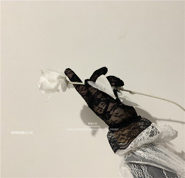 Черные перчатки, xэллоуин, кружевное платье, в цветочек