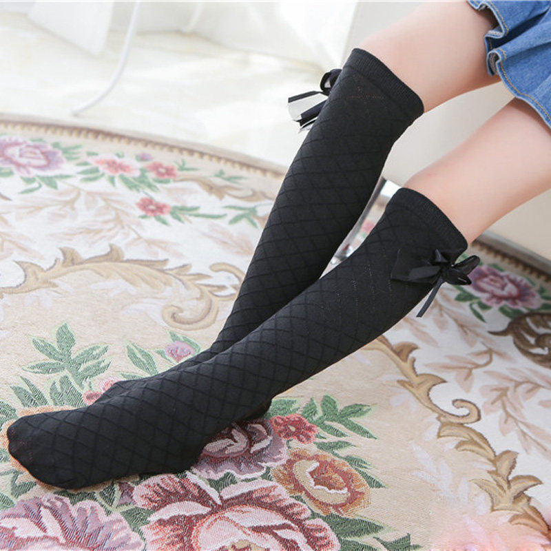 Девочки носки колена высокая клетчатка для детей для детей причинно-причинно-эластичные длинные высокие носки для малышей для малышей с твердым луком мода 3-12 лет