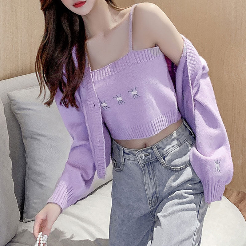 Осенний сиреневый лонгслив, кардиган, топ с чашечками, комплект, коллекция 2022, популярно в интернете