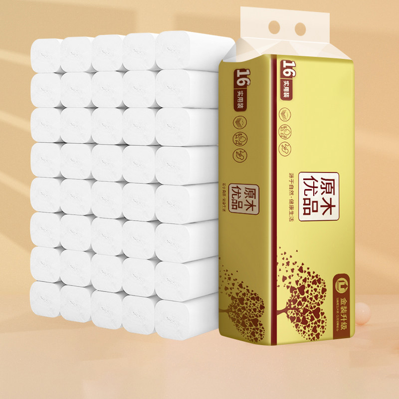16 -Roll -Бесплатная катящая бумага Супер жесткая туалетная бумага Домохозяйная доступная туалетная бумага ручная ручная ручная корма с полной коробкой оптом сырой деревянный рулон