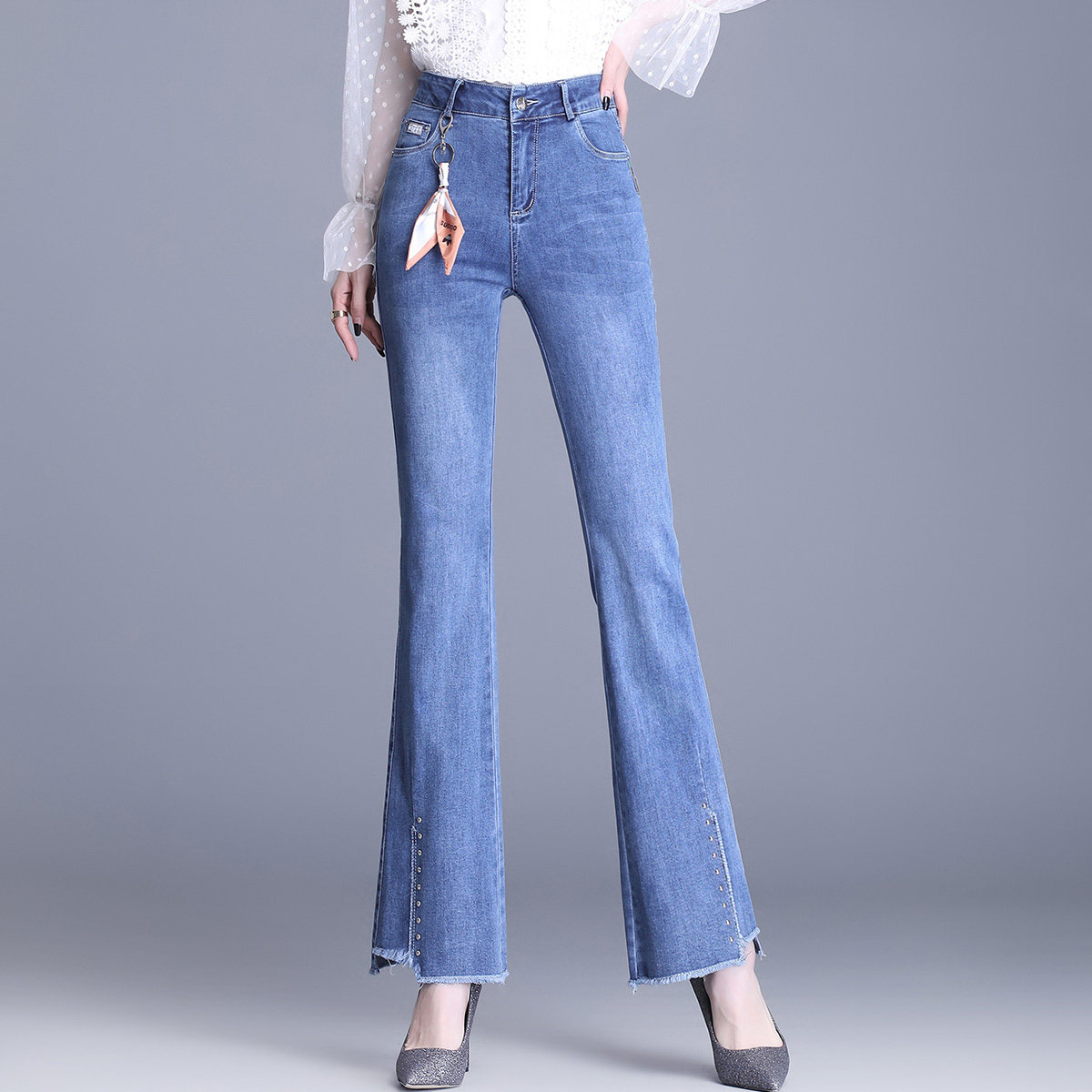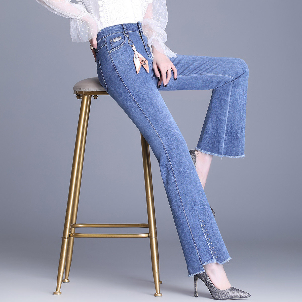 Джинсы, штаны, весенние ретро штаны-клёш, коллекция 2021, высокая талия