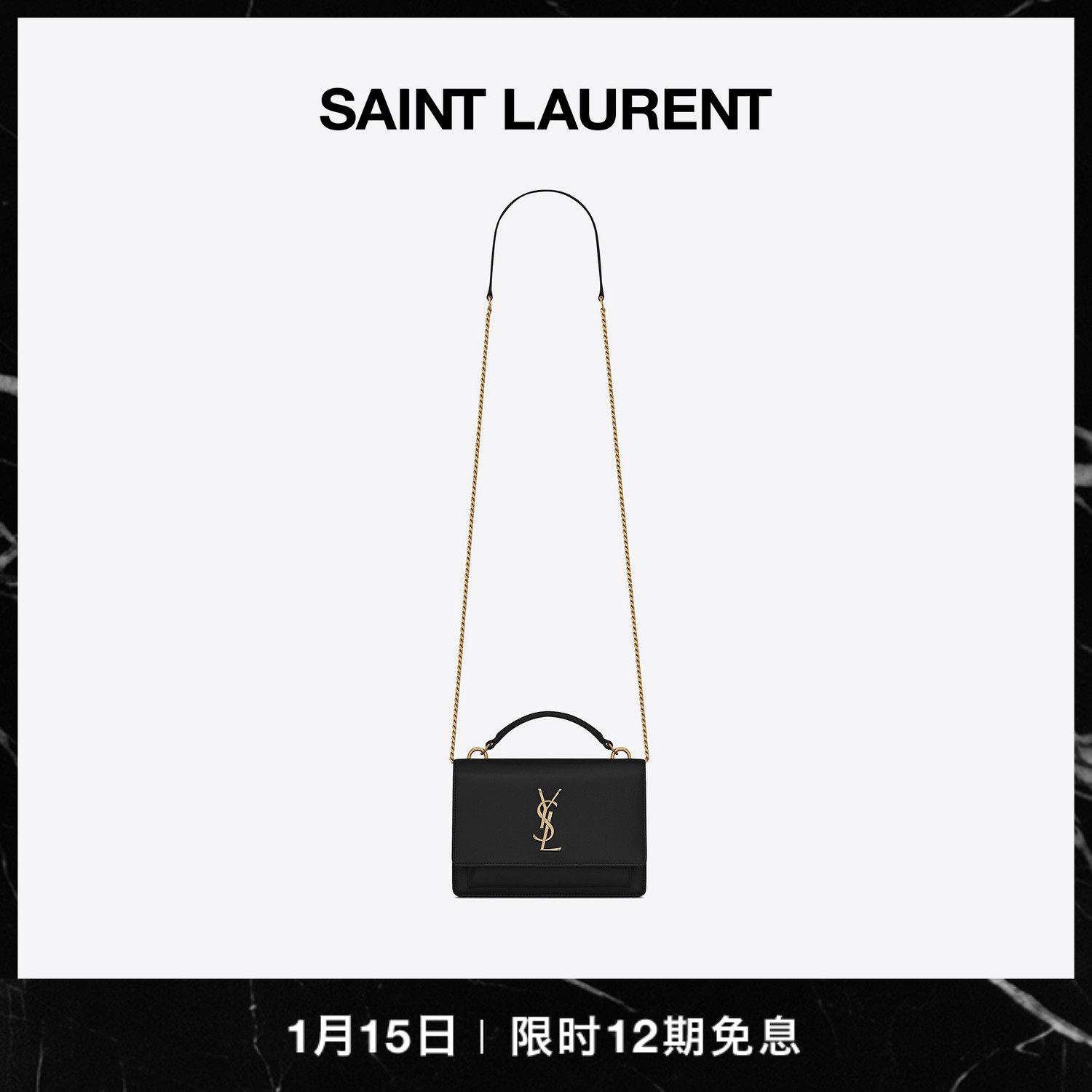 YSL, черная цепь, бумажник, сумка на одно плечо
