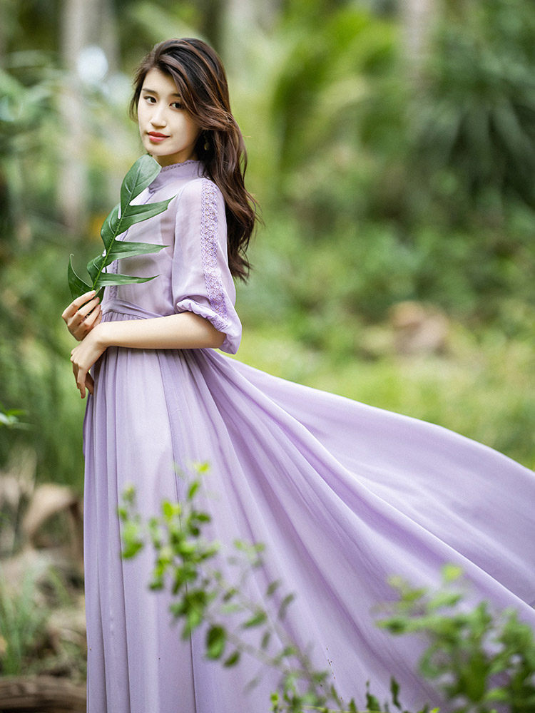 Кружевная весенняя сиреневая длинная юбка, шифоновое платье, (в наличии на складе), коллекция 2022, яркий броский стиль, высокая талия