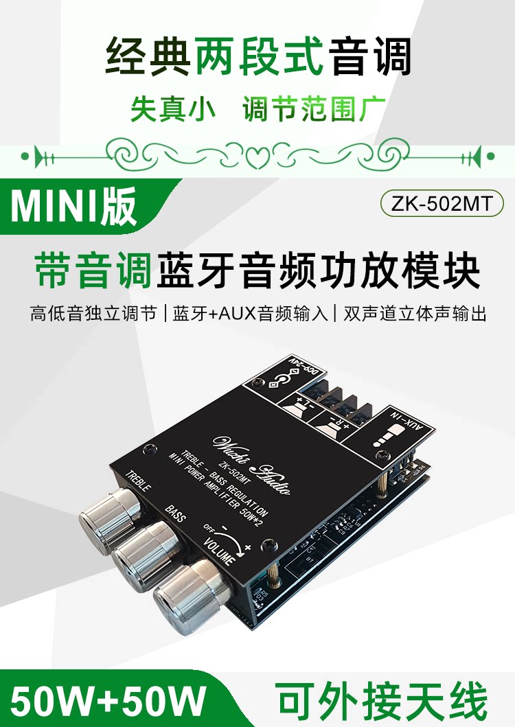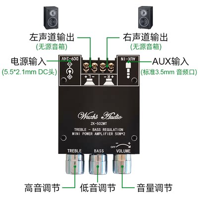 Wuzhi Audio Mini Mini High Bass Регулировка 2.0 Стерео Bluetooth Audio Function Module 50W*2