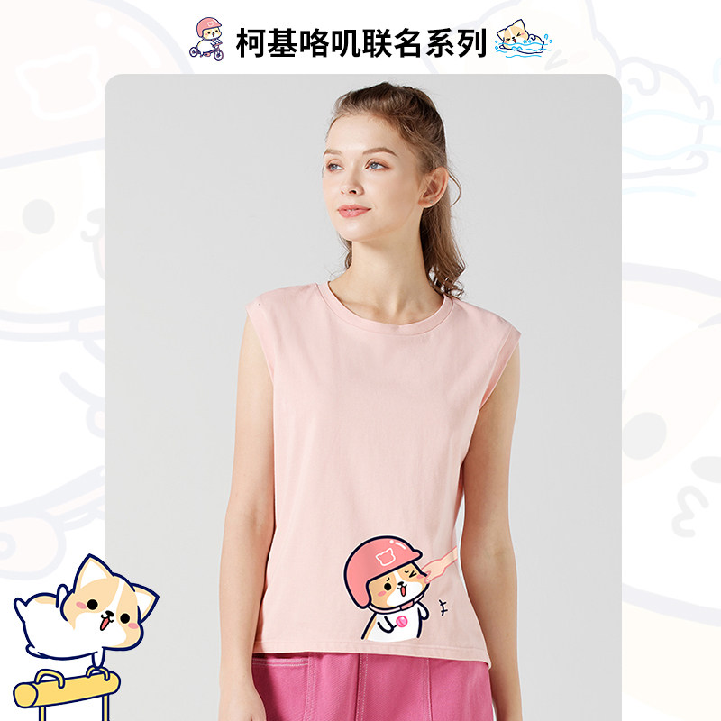 艾米恋 Розовая летняя футболка без рукавов, хлопковая майка топ, эффект подтяжки, оверсайз