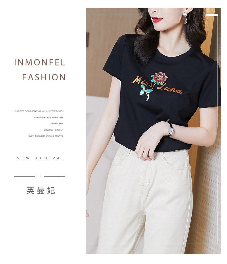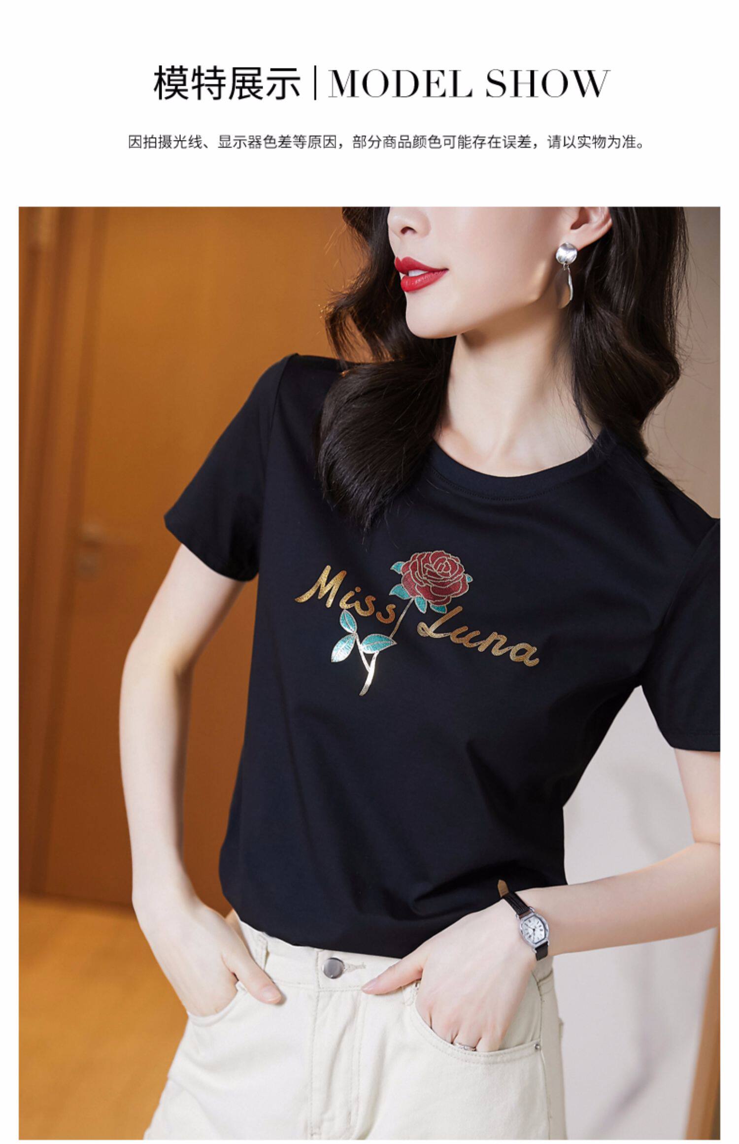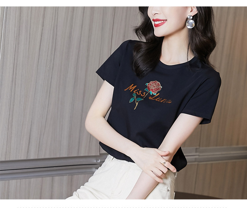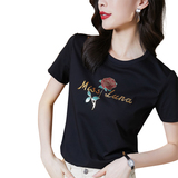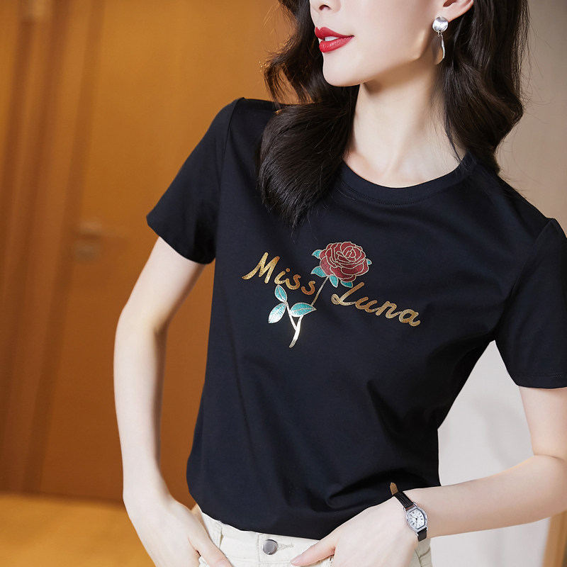 Модная летняя черная футболка с коротким рукавом с круглым воротником