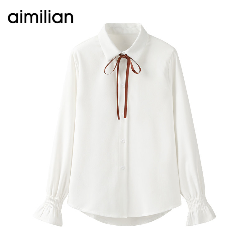 艾米恋 Рубашка с бантиком, осенний вельветовый белый милый лонгслив, коллекция 2021