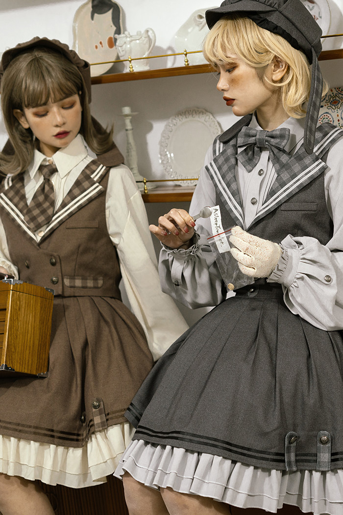 | Цвет: | Британская кофейная юбка (плечо), Британское кафе, Ретро жилет, Британская кофейная рубашка, Ретро рубашка, Один размер британский кафе плащ, Один размер ретро серый плащ, Ретро юбка, бретели |
