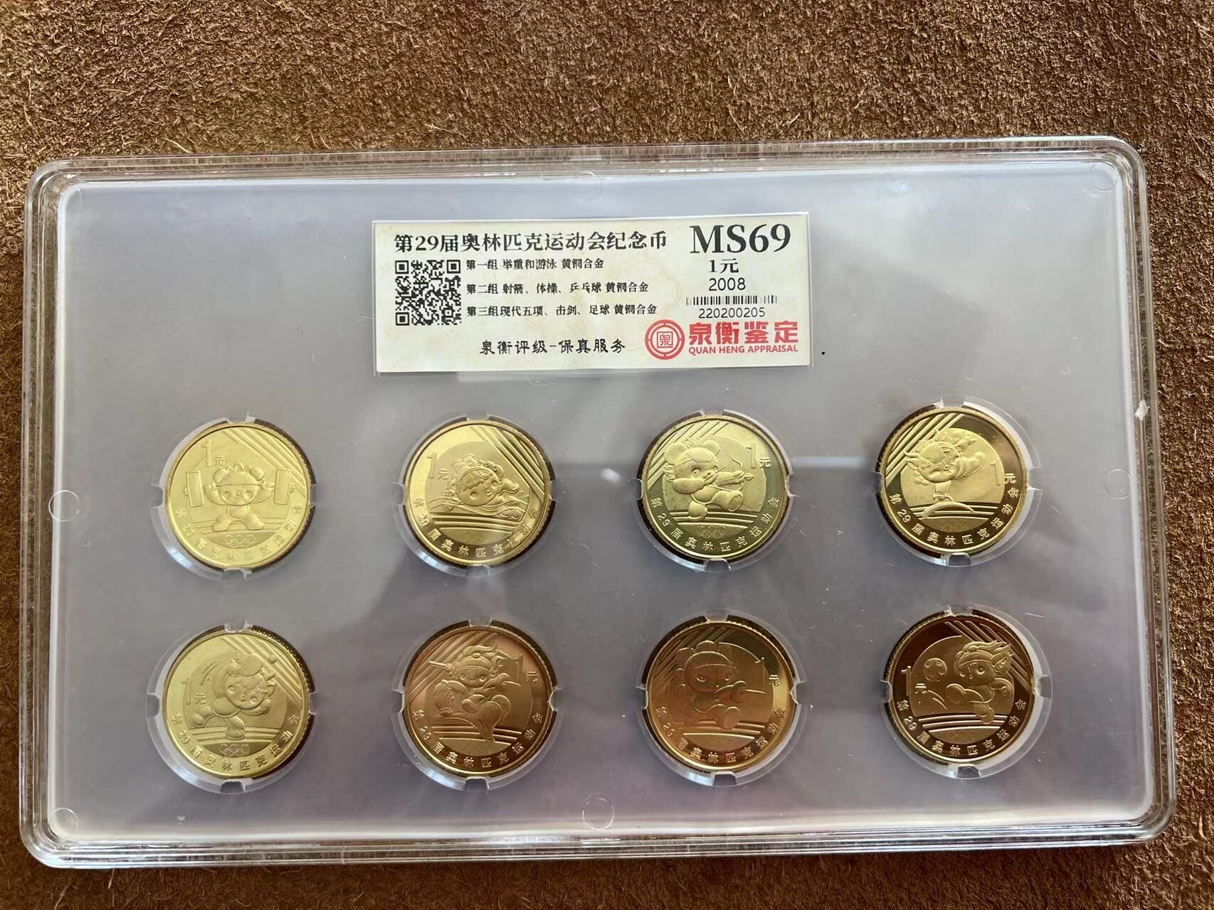 2008 Пекинские Олимпийские игры Челевая монета [Оценка Quanheng MS69] 8 комплектов, крупные бренды, бесплатная доставка