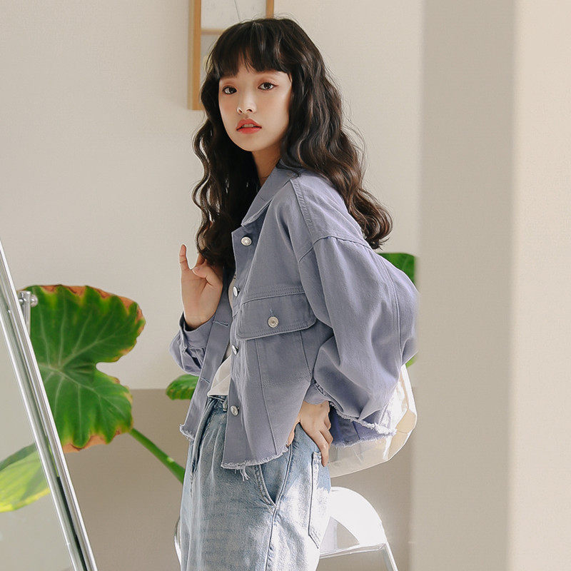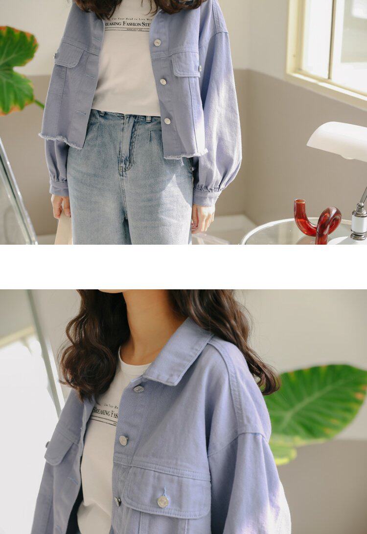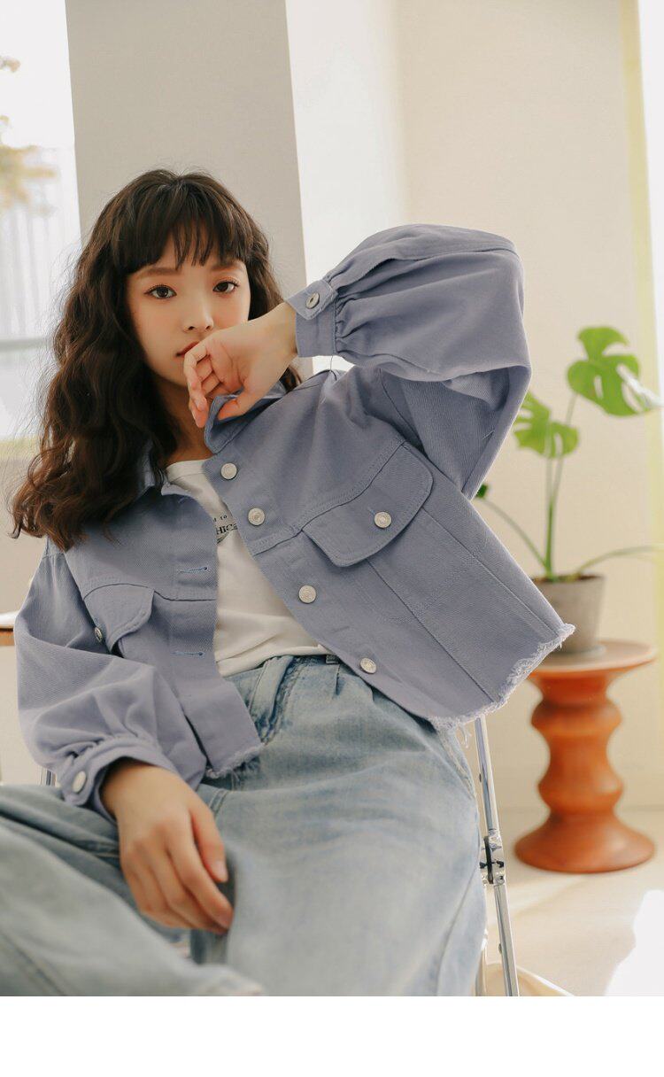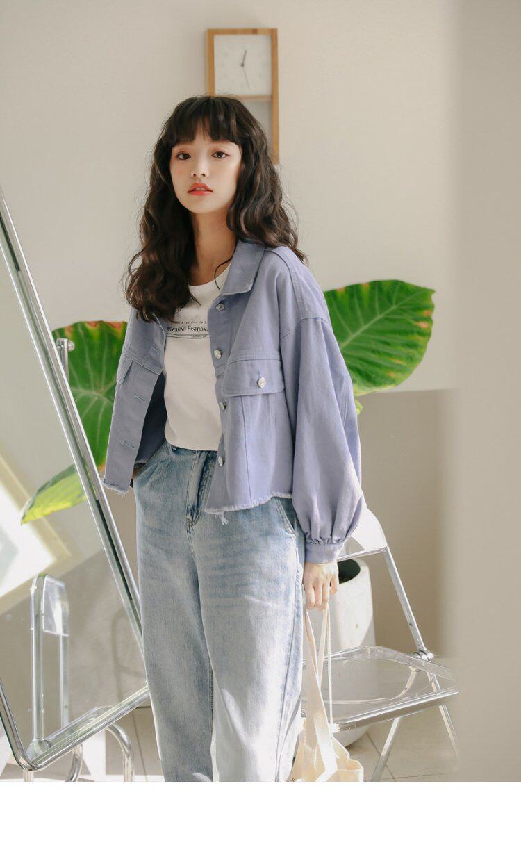 Короткий фонарь, джинсовая осенняя свежая куртка, новая коллекция, в корейском стиле, оверсайз