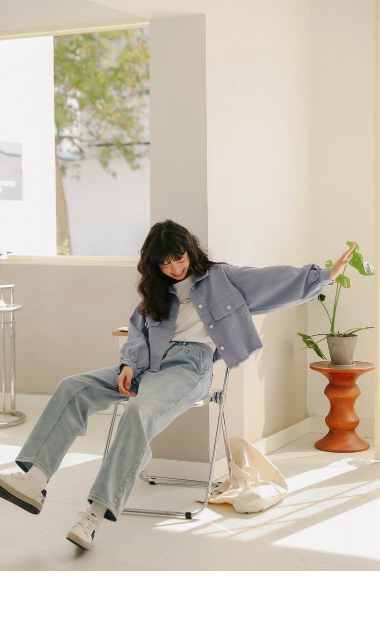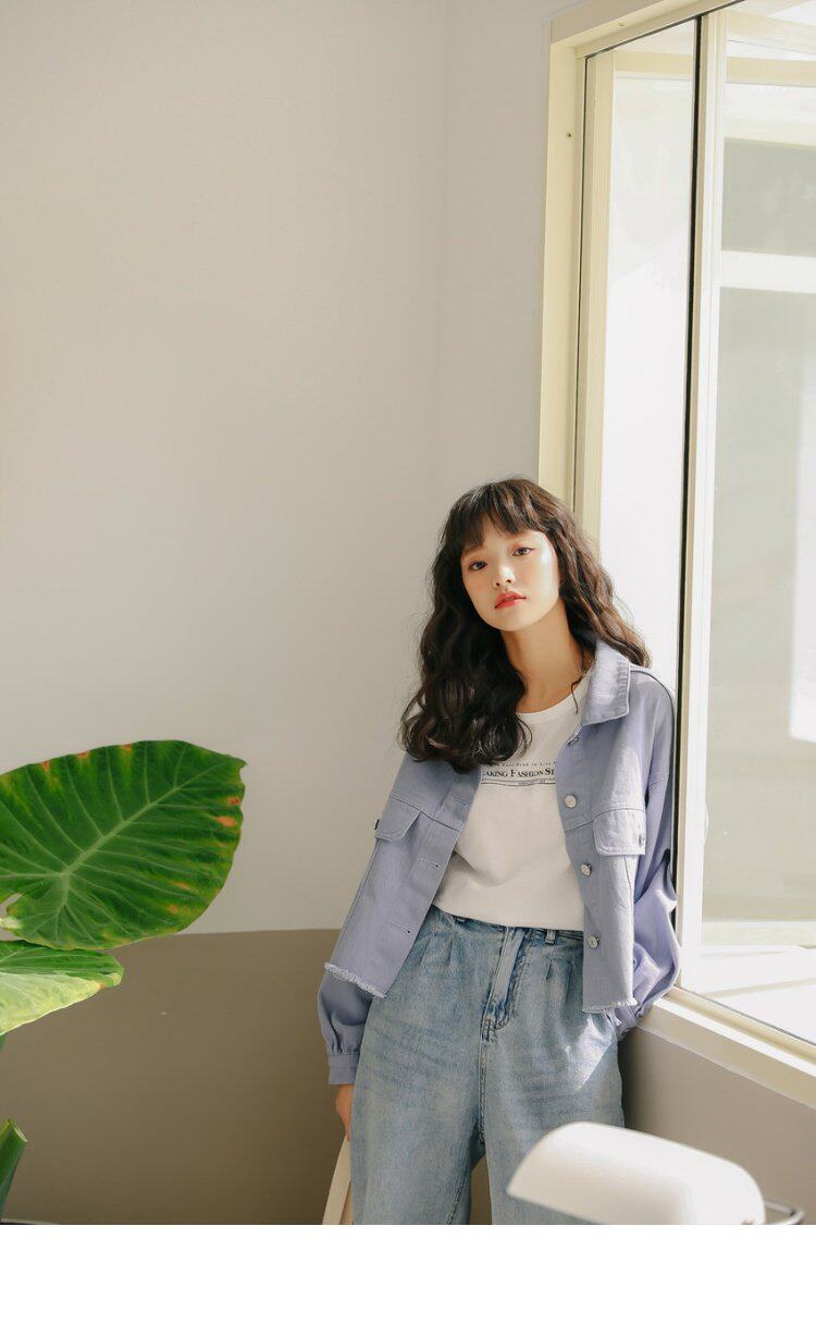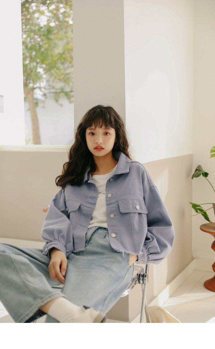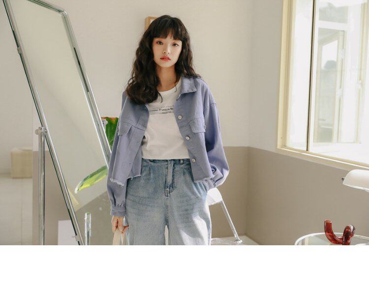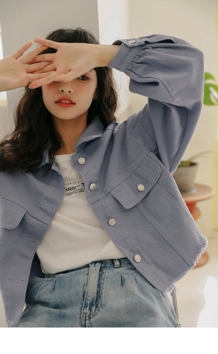 Короткий фонарь, джинсовая осенняя свежая куртка, новая коллекция, в корейском стиле, оверсайз
